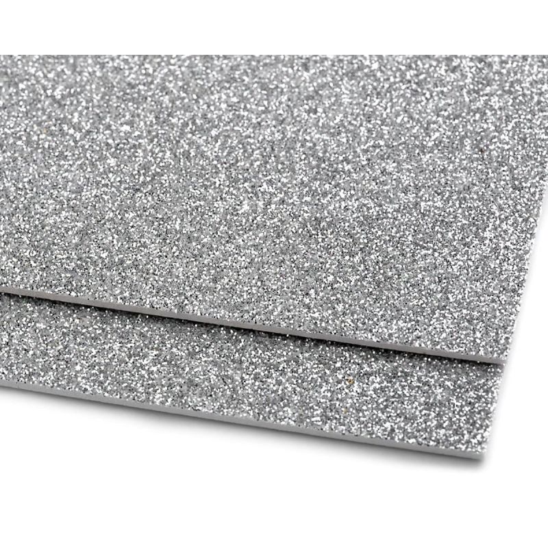 Pěnová guma Moosgummi 20x30cm, 750861 jednobarevná 2 stříbrná, tloušťka 1,9mm, s glitry