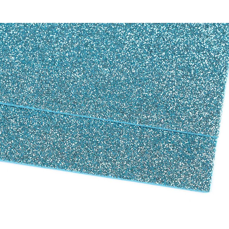 Pěnová guma Moosgummi 20x30cm, 750861 jednobarevná 9 modrá ledová, tloušťka 1,9mm, s glitry
