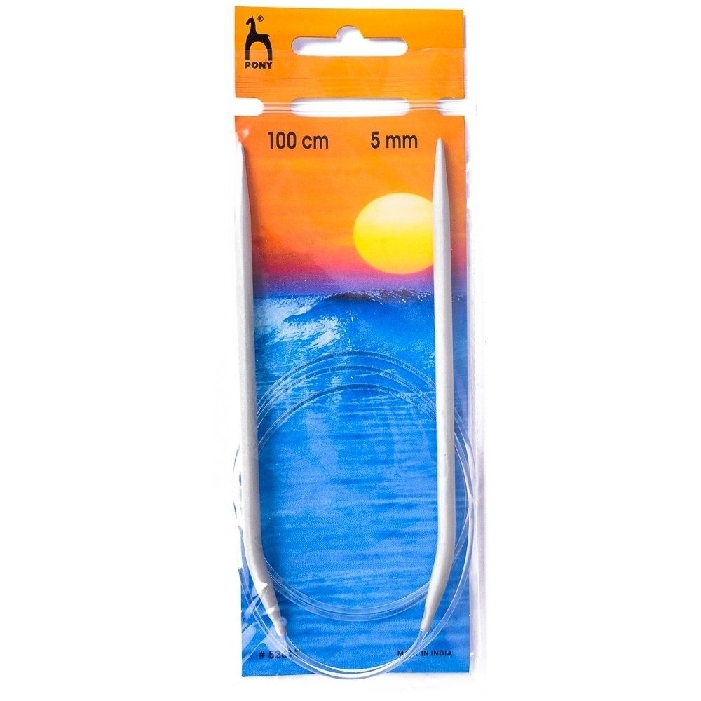 Pletací jehlice PONY, hliníkové, kruhové, 1 kus, délka 100cm, velikost 5mm