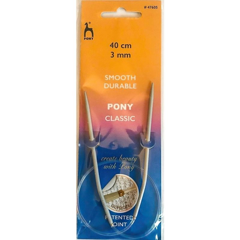 Pletací jehlice PONY, hliníkové, kruhové, 1 kus, délka 40cm, velikost 3mm