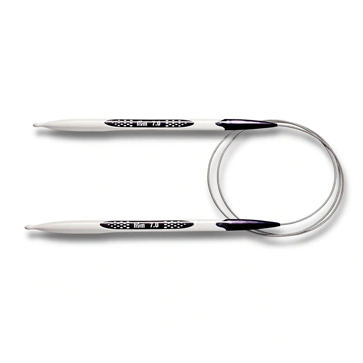 Revoluční pletací jehlice z vysoce funkčního syntetického materiálu německé firmy PRYM. Jehlice jsou ergonomické, velmi lehké a nehlučné. Špička ve tvaru kapky umožňuje jednodušší zachycení příze a hladké vedení jednotlivých ok, které je podpořeno i trojúhelníkovým profilem jehlice. Kruhové jehlice jsou spojeny ocelovým lankem potaženým plastem v délce 80cm a velikosti 7mm, které je pevné, ale zároveň i jemné a poddajné. Balení obsahuje 1 kus jehlic.