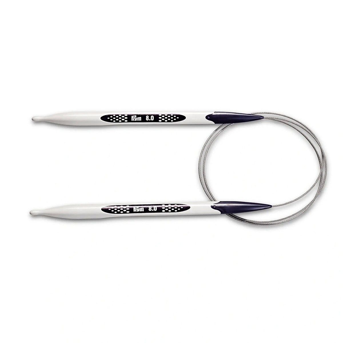 Revoluční pletací jehlice z vysoce funkčního syntetického materiálu německé firmy PRYM. Jehlice jsou ergonomické, velmi lehké a nehlučné. Špička ve tvaru kapky umožňuje jednodušší zachycení příze a hladké vedení jednotlivých ok, které je podpořeno i trojúhelníkovým profilem jehlice. Kruhové jehlice jsou spojeny ocelovým lankem potaženým plastem v délce 80cm a velikosti 8mm, které je pevné, ale zároveň i jemné a poddajné. Balení obsahuje 1 kus jehlic.