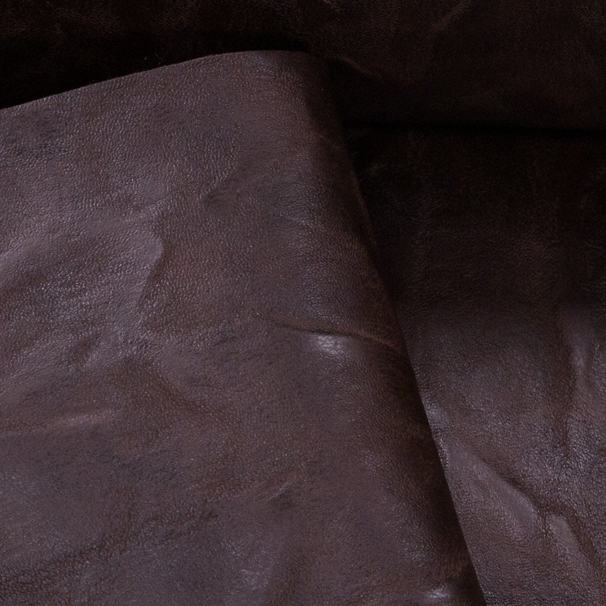 Potahová látka, čalounická koženka s filcem NATURHAVEN 08, extra odolná imitace kůže, tmavě hnědá, pokrčený efekt, š.140cm, 560g/m2 (látka v metráži)