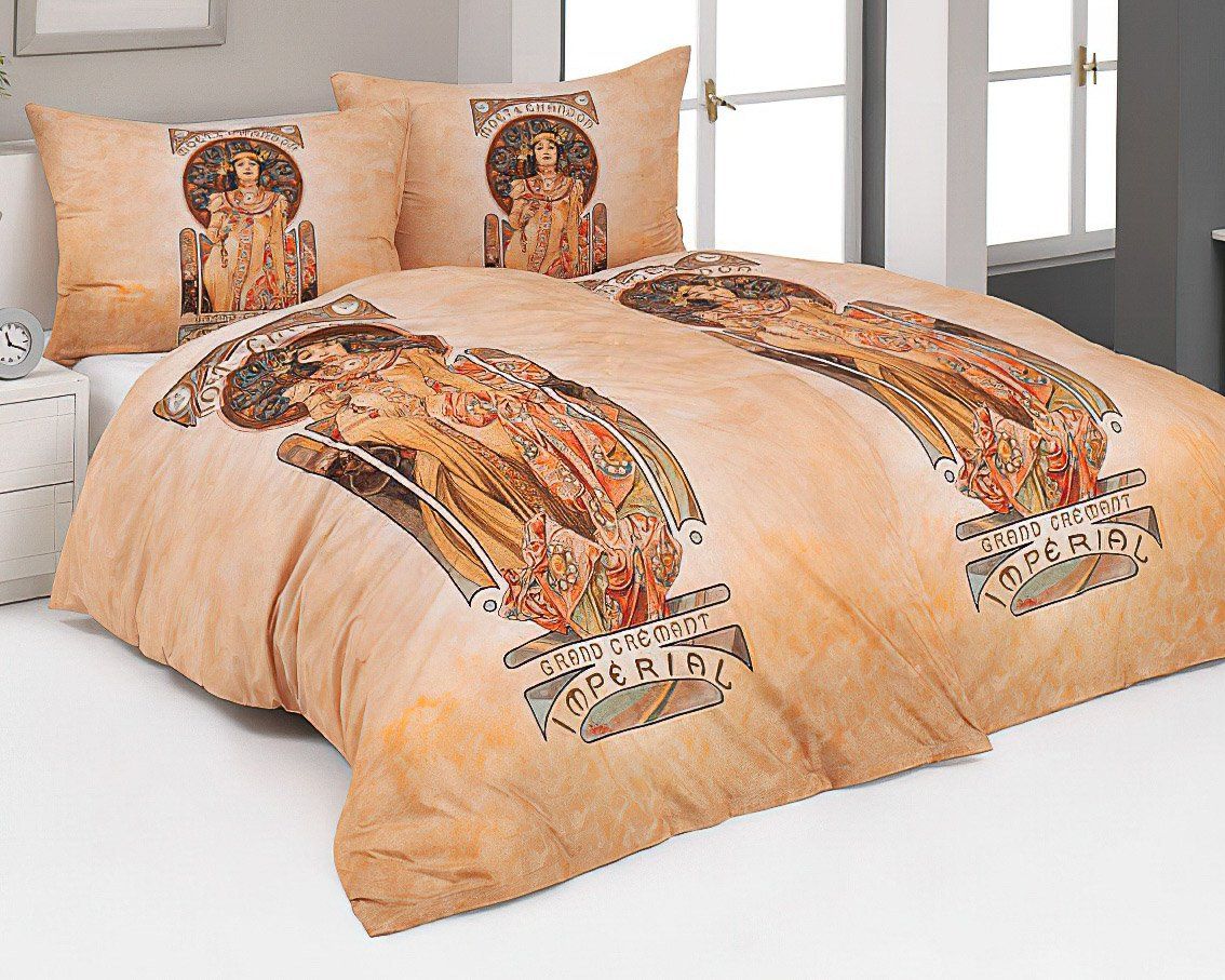 Povlečení Matějovský ALFONS MUCHA MOET, béžové, bavlna hladká digitál, 140x200cm + 70x90cm