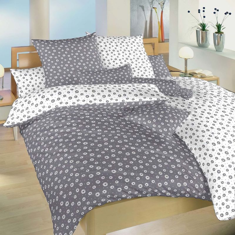 Povlečení ANEŽKA BÍLÁ / TMAVĚ ŠEDÁ DUO, květinový vzor, bavlna hladká, 140x200cm + 70x90cm