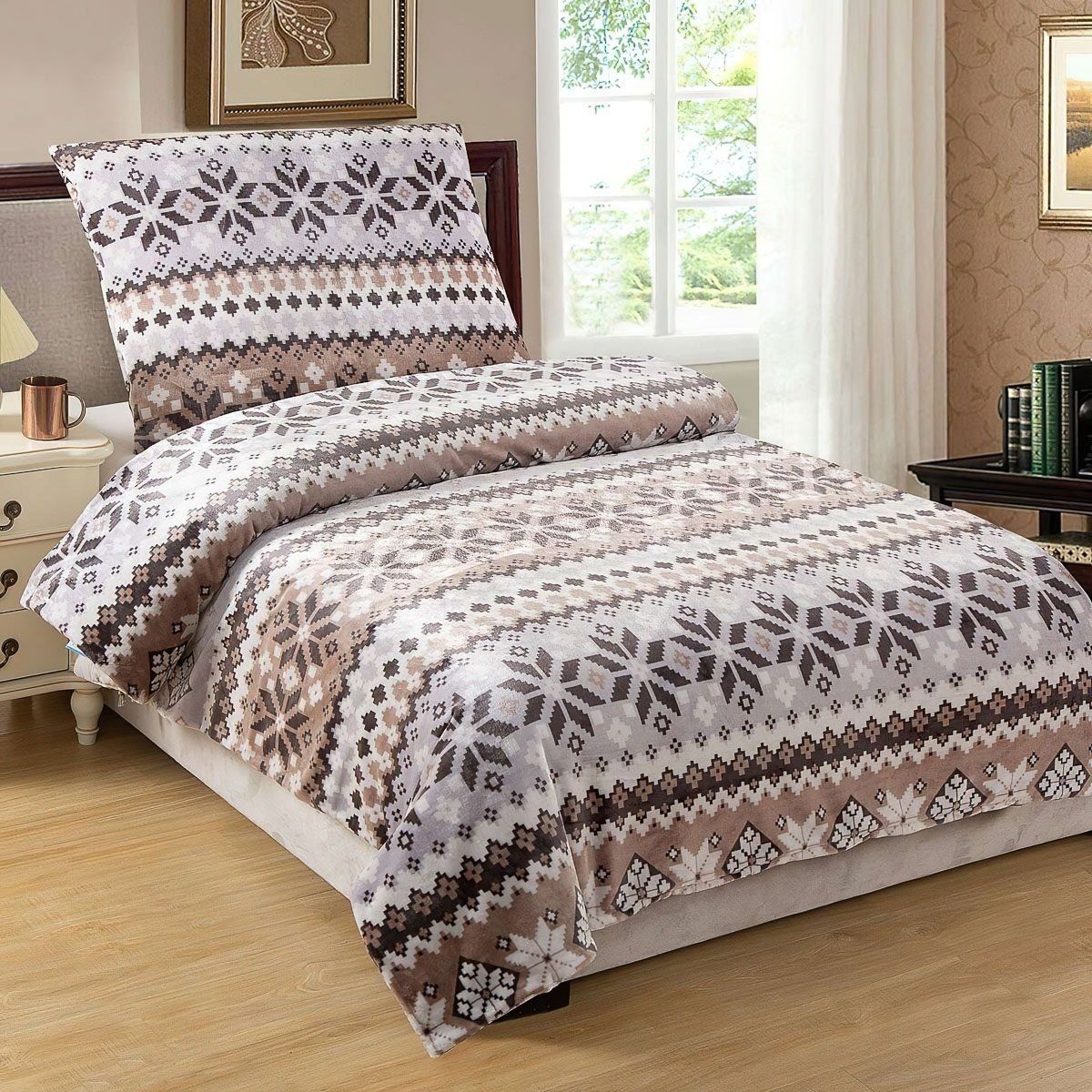 Mikroflanelové povlečení z kolekce MyHouse se severským vzorem v hnědo-béžových barvách. Povlečení je z obou stran stejné. Mikroflanel se vyznačuje svou velkou hebkostí a hřejivostí v zimě, v létě naopak příjemně chladí. Souprava je vyrobena ze 100% polyesteru a obsahuje jeden povlak na přikrývku 140 x 200 cm a jeden povlak na polštář 70 x 90 cm. Zapínání na zip.Kvalitní ložní povlečení z mikroflanelu bude skvělým doplňkem Vaší ložnice v prodlouženém rozměru s motivem geometrických vzorů v hnědé a béžové barvě. Materiál je tvořen hustými krátkými chloupky, které zajistí vysokou hřejivost, hebkost a měkkost. Díky svým termoregulačním vlastnostem Vás velmi rychle zahřeje, a je tak doporučováno zejména do chladného období (v létě je naopak možné jej používat jen tak bez přikrývky). Vyberte si to pravé pro Vás!