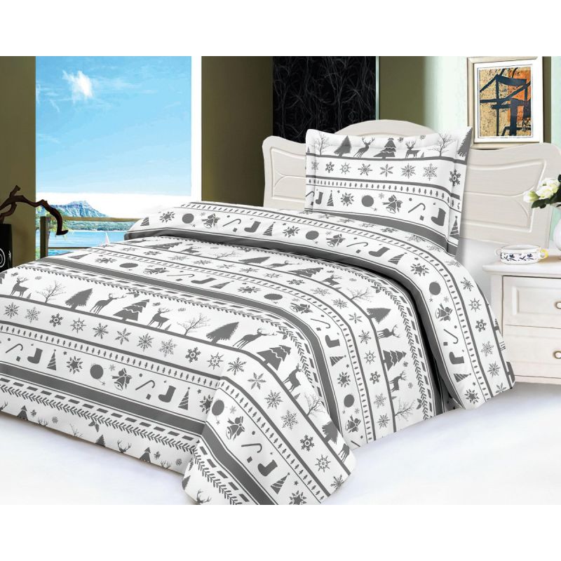 Povlečení CHRISTMAS, mikroflanel, vánoční motiv, šedé, 140x200cm + 70x90cm