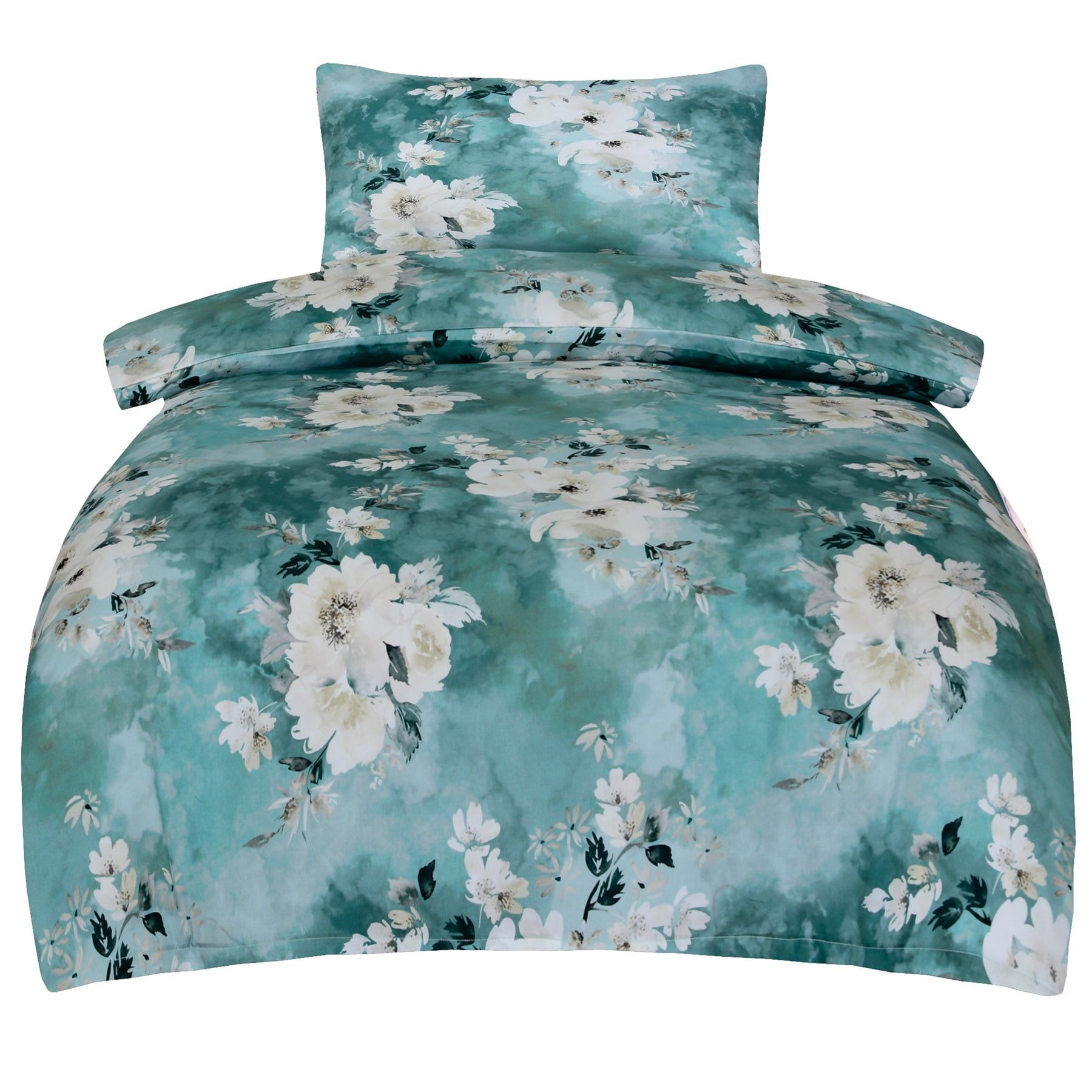 Povlečení FIONA, květinový vzor, tyrkysové, bavlněný mako satén, 140x200cm + 70x90cm