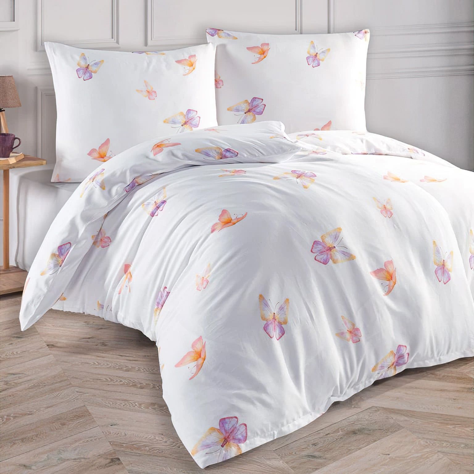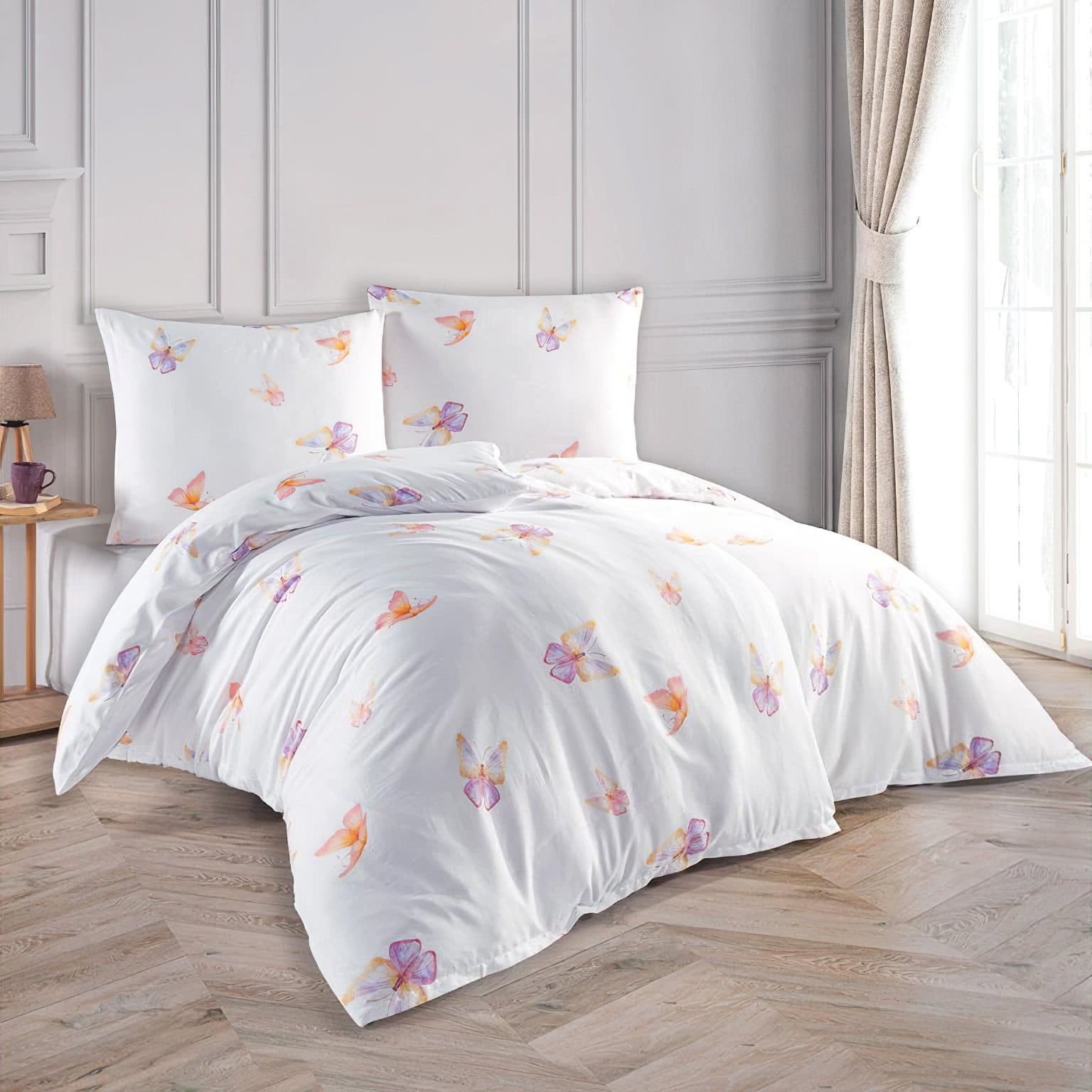 Bavlněné povlečení s kolekce BedTex Exklusive se vzorem fialko-oranžových motýlků na bílém podkladu. Povlak na přikrývku i povlak na polštář jsou oboustranné. Souprava je vyrobena ze 100% česané bavlny hladké na dotek, příjemné na pokožku. Díky digitálnímu tisku vzory na povlečení krásně vynikají. Souprava obsahuje jeden povlak na přikrývku 140 x 200 cm a jeden povlak na polštář 70 x 90 cm. Zapínání na zip.Povlečení z kolekce BedTex ze 100% česané bavlny. U povlečení je použit vysoce kvalitní materiál se speciální úpravou, díky které je pevnější a zachová si svůj tvar i po mnoha vypráních. Povlečení doporučujeme prát na 40°C tiskem dovnitř, při nastavení nižších otáček ždímání si také usnadníte žehlení. Vyberte si to pravé právě pro Vás!