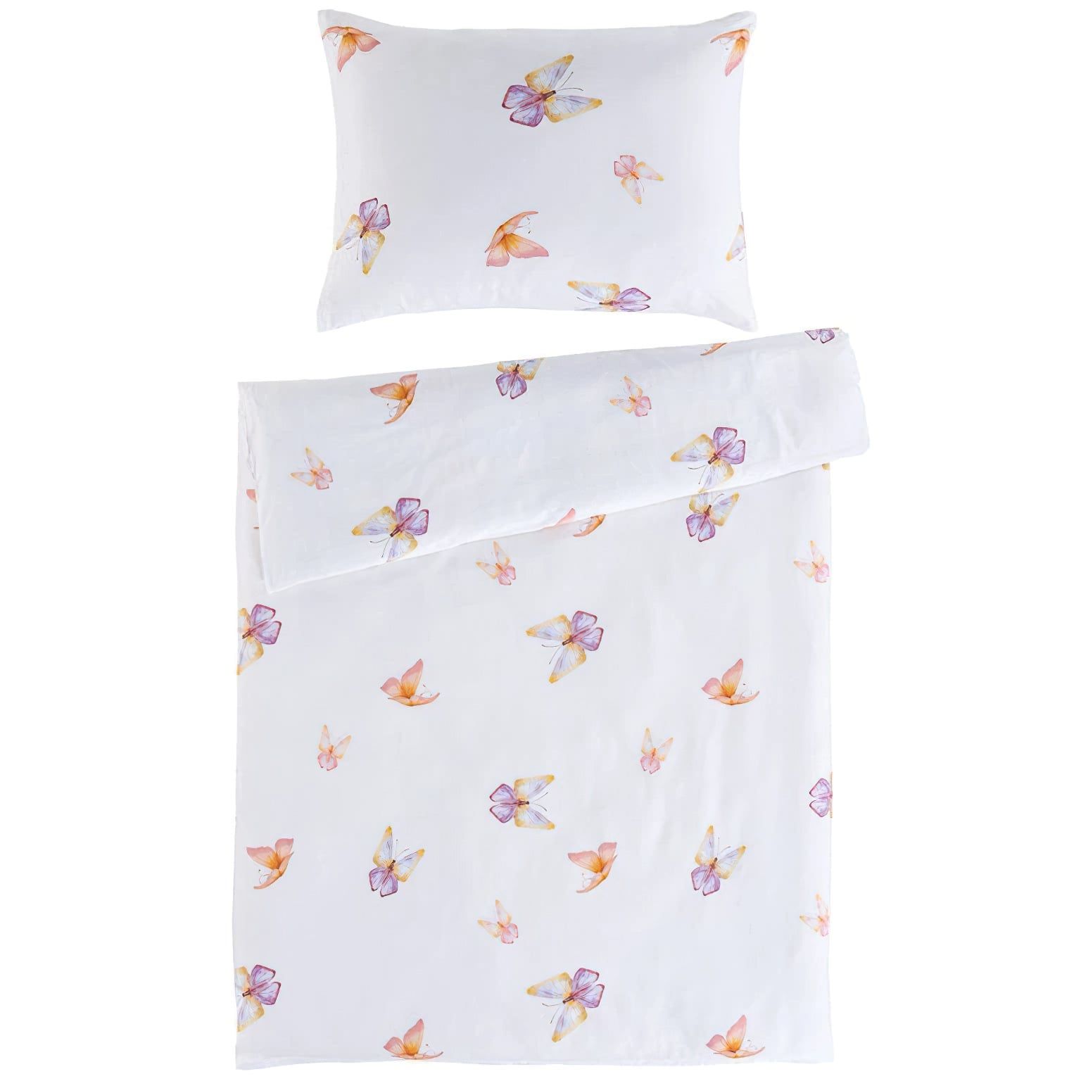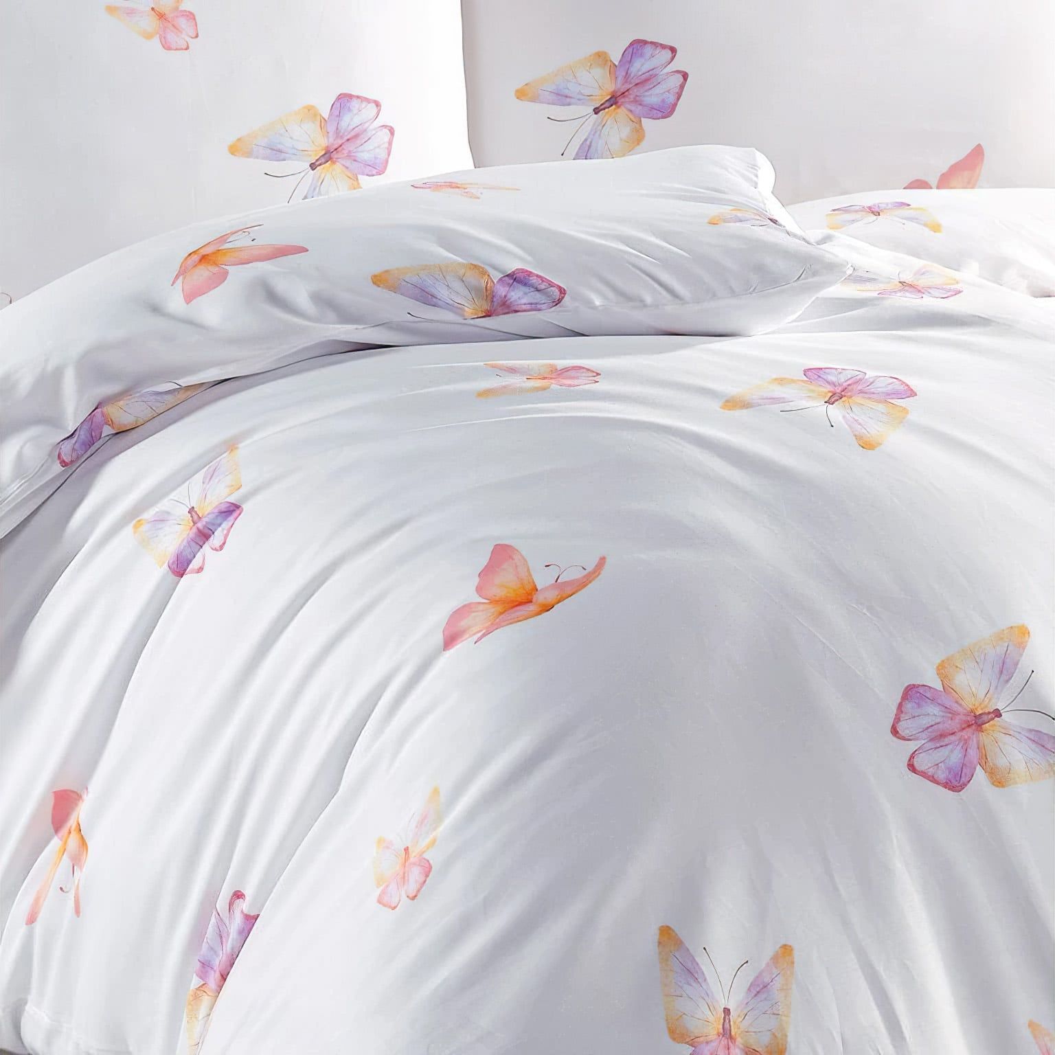 Povlečení FLUTTER motýlci, bílé, bavlněný satén, 140x200cm + 70x90cm