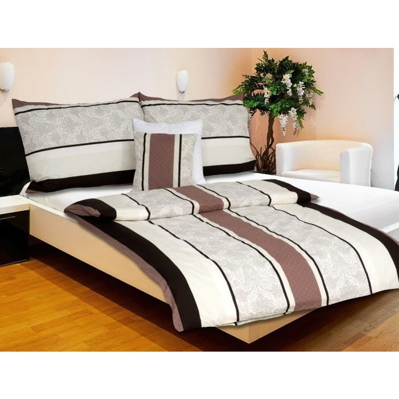 Povlečení KAROLINE 015 hnědobéžové pruhy, krep, 140x200cm + 70x90cm