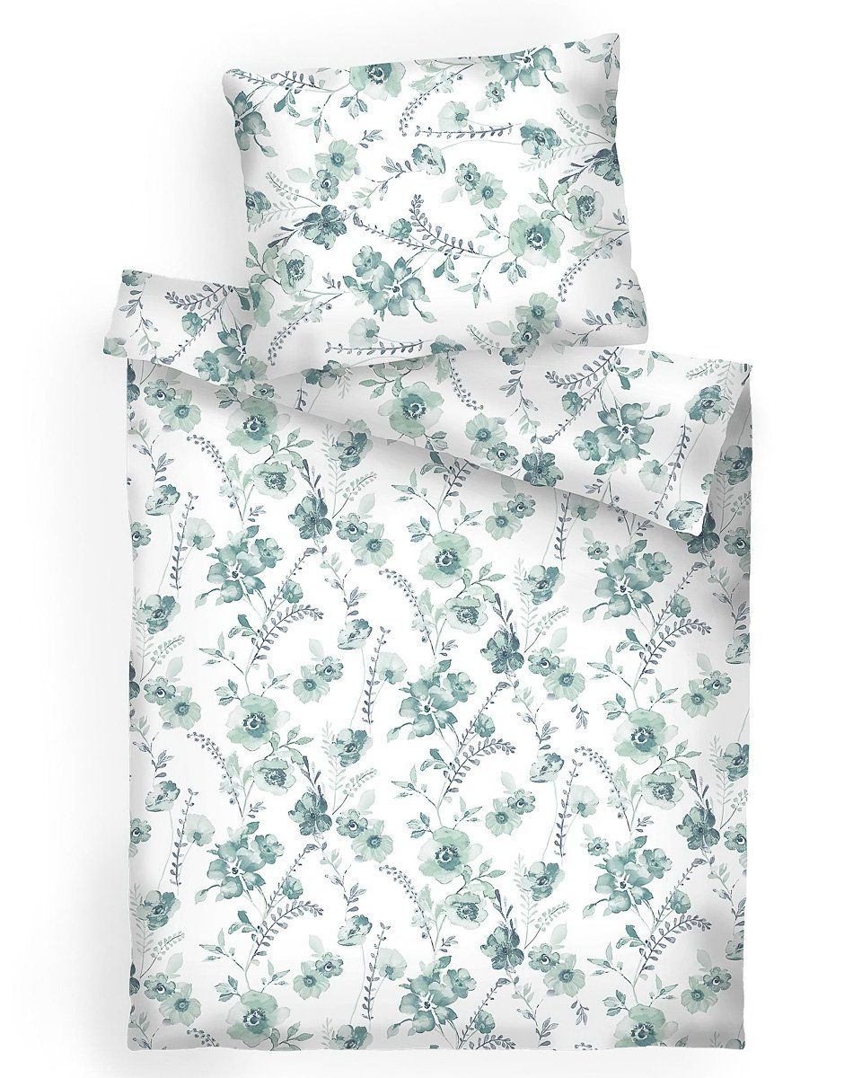 Povlečení KVÍTÍ MENTOLOVÉ NA BÍLÉM, zelené květy, krep, 140x200cm + 70x90cm