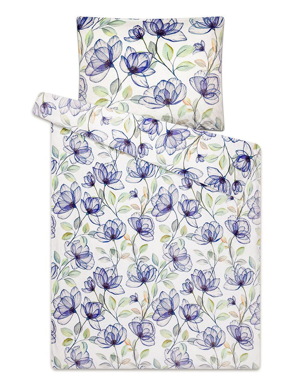 Povlečení LILY mikroflanel, modré květiny 140x200cm + 70x90cm