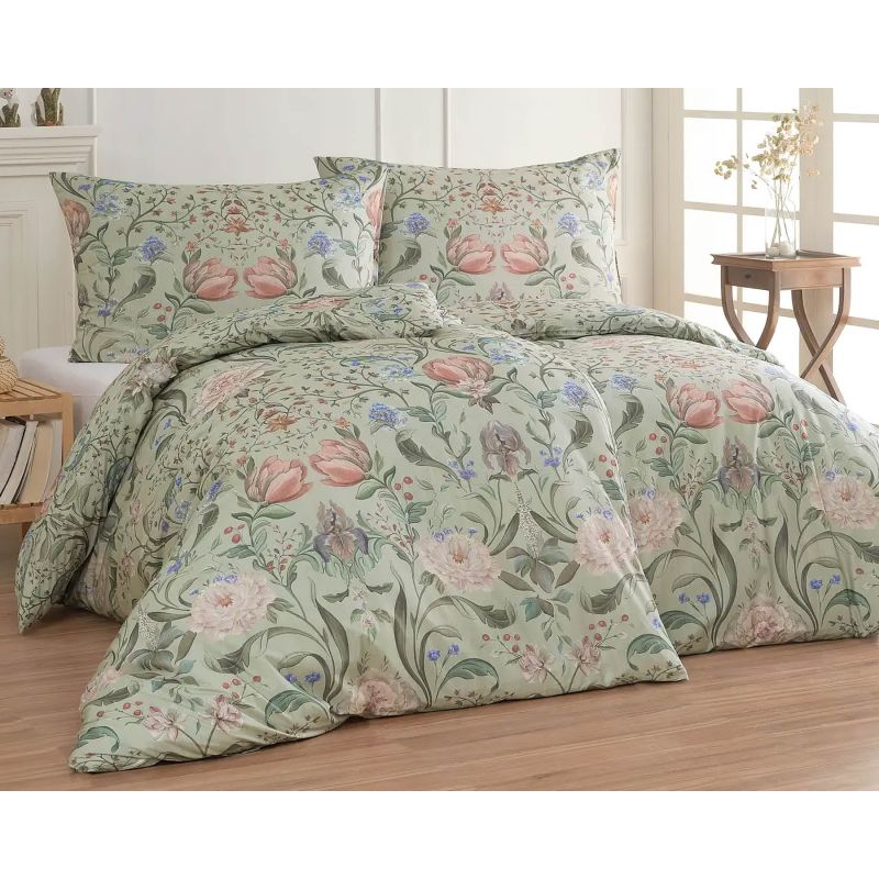 Povlečení Matějovský ALMA, květinový vzor, světle zelené, bavlna hladká, digitál, 140x200cm + 70x90cm