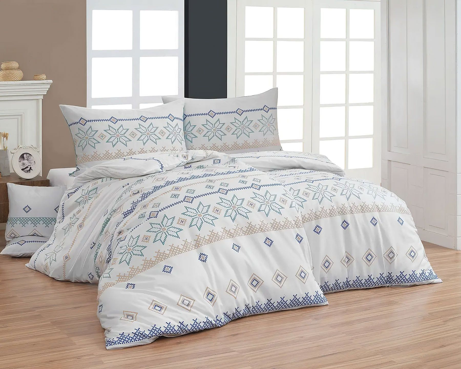Flanelové povlečení se severským vzorem bílo-modré barvě. Povlečení je oboustranné a z obou stran stejné. Souprava je vyrobena ze 100% bavlny a obsahuje povlak na přikrývku a povlak na polštář. Zapínání na zip.Povlečení z kolekce Matějovský ze 100% bavlny. U povlečení z kolekce Matějovský je použit vysoce kvalitní materiál se speciální úpravou, díky které je pevnější a zachová si svůj tvar i po mnoha vypráních. Díky speciální technice tisku je také zaručena barevná stálost. Povlečení doporučujeme prát na 40°C tiskem dovnitř, při nastavení nižších otáček ždímání si také usnadníte žehlení s výjimkou krepového povlečení, které se nežehlí. Vyberte si to pravé právě pro Vás!