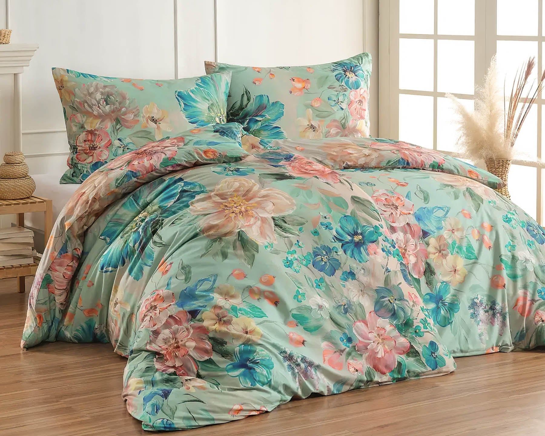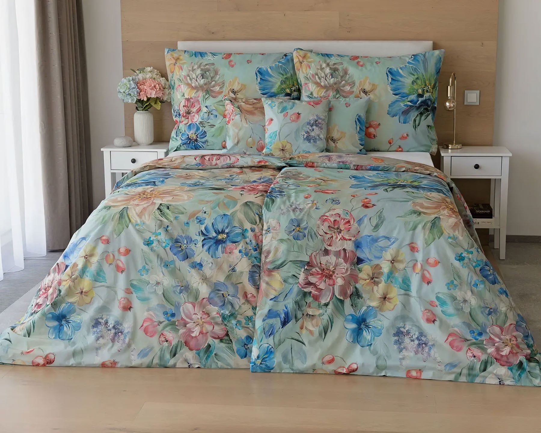 Povlečení Matějovský CLARA, květinový vzor, světle tyrkysové, bavlna hladká digitál, (více rozměrů)