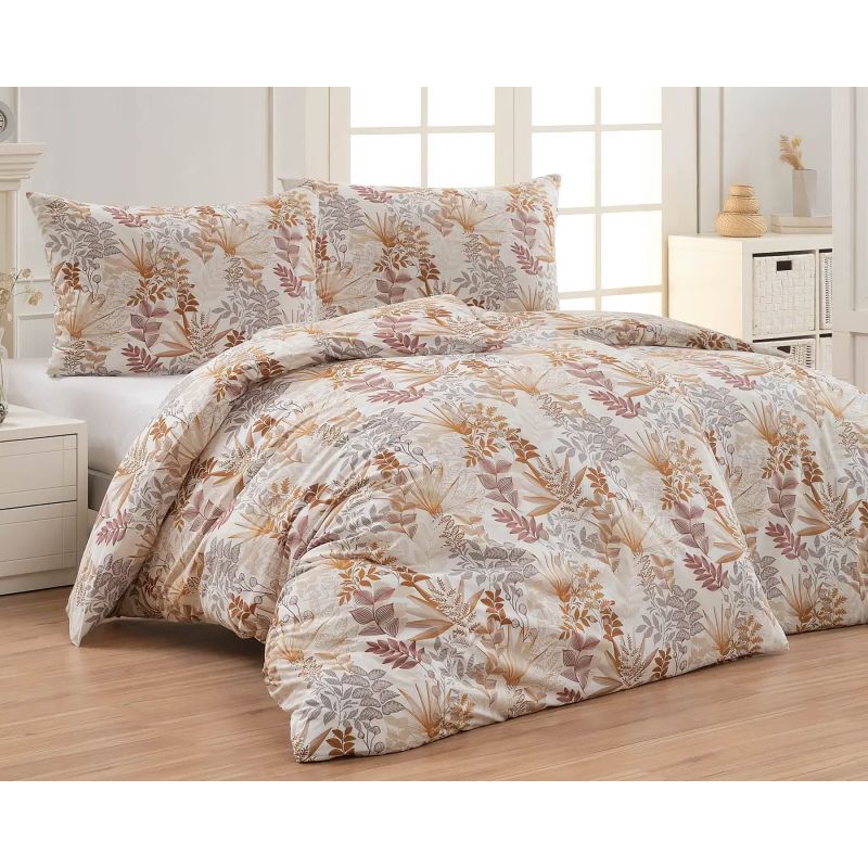 Povlečení Matějovský CLEMENTINE, béžové a hnědé listy, bavlna hladká, 140x200cm + 70x90cm