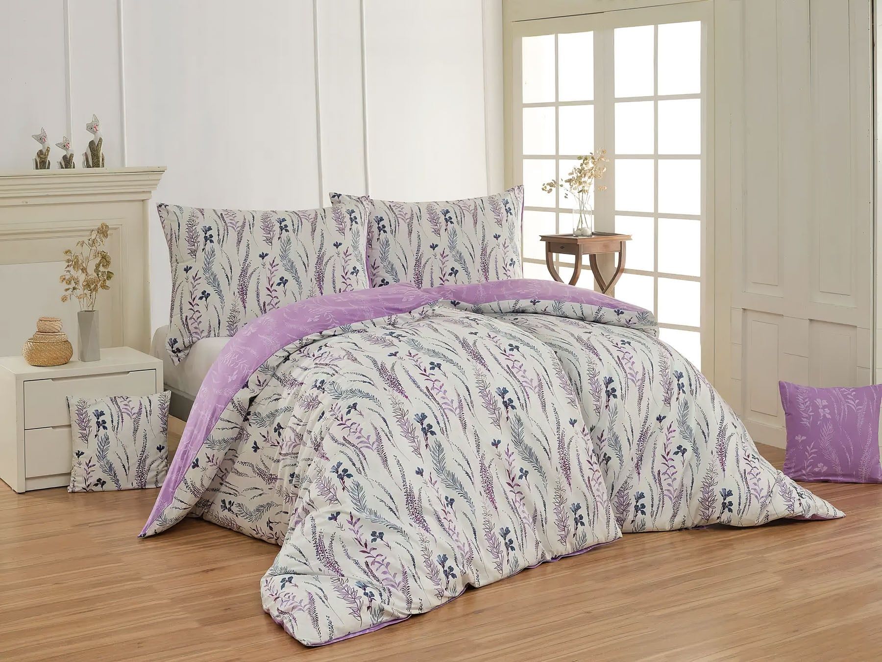 Bavlněné povlečení se vzorem větviček na světle fialkovém podkladu. Povlak na přikrývku má z jedné strany vzor na světle fialkové a z druhé strany jsou větvičky na fialovém podkladu, povlak na polštář má vzor na bílé. Souprava je vyrobena ze 100% bavlny a obsahuje povlak na přikrývku a povlak na polštář. Zapínání na zip.Povlečení z kolekce Matějovský ze 100% bavlny. U povlečení z kolekce Matějovský je použit vysoce kvalitní materiál se speciální úpravou, díky které je pevnější a zachová si svůj tvar i po mnoha vypráních. Díky speciální technice tisku je také zaručena barevná stálost. Povlečení doporučujeme prát na 40°C tiskem dovnitř, při nastavení nižších otáček ždímání si také usnadníte žehlení s výjimkou krepového povlečení, které se nežehlí. Vyberte si to pravé právě pro Vás!