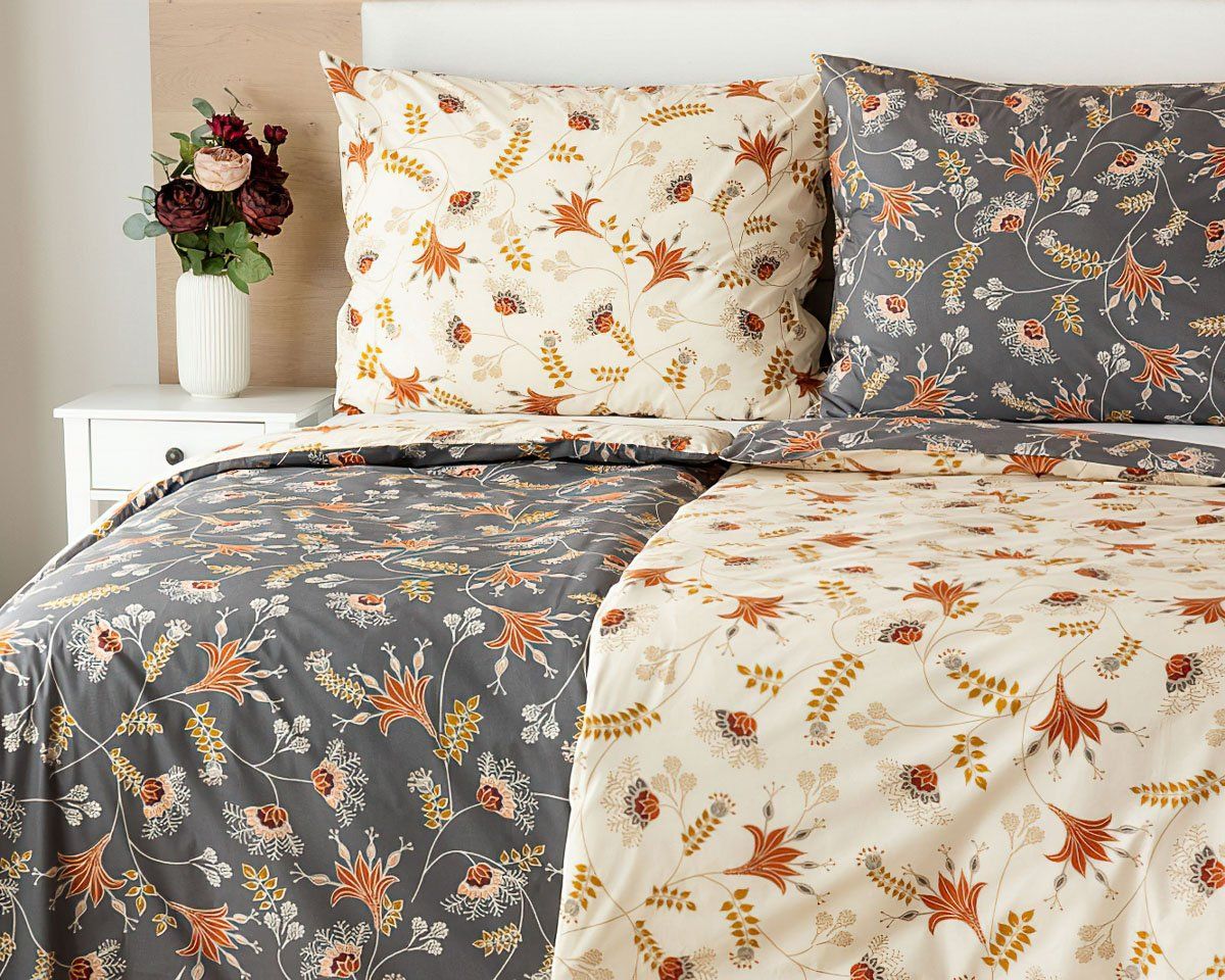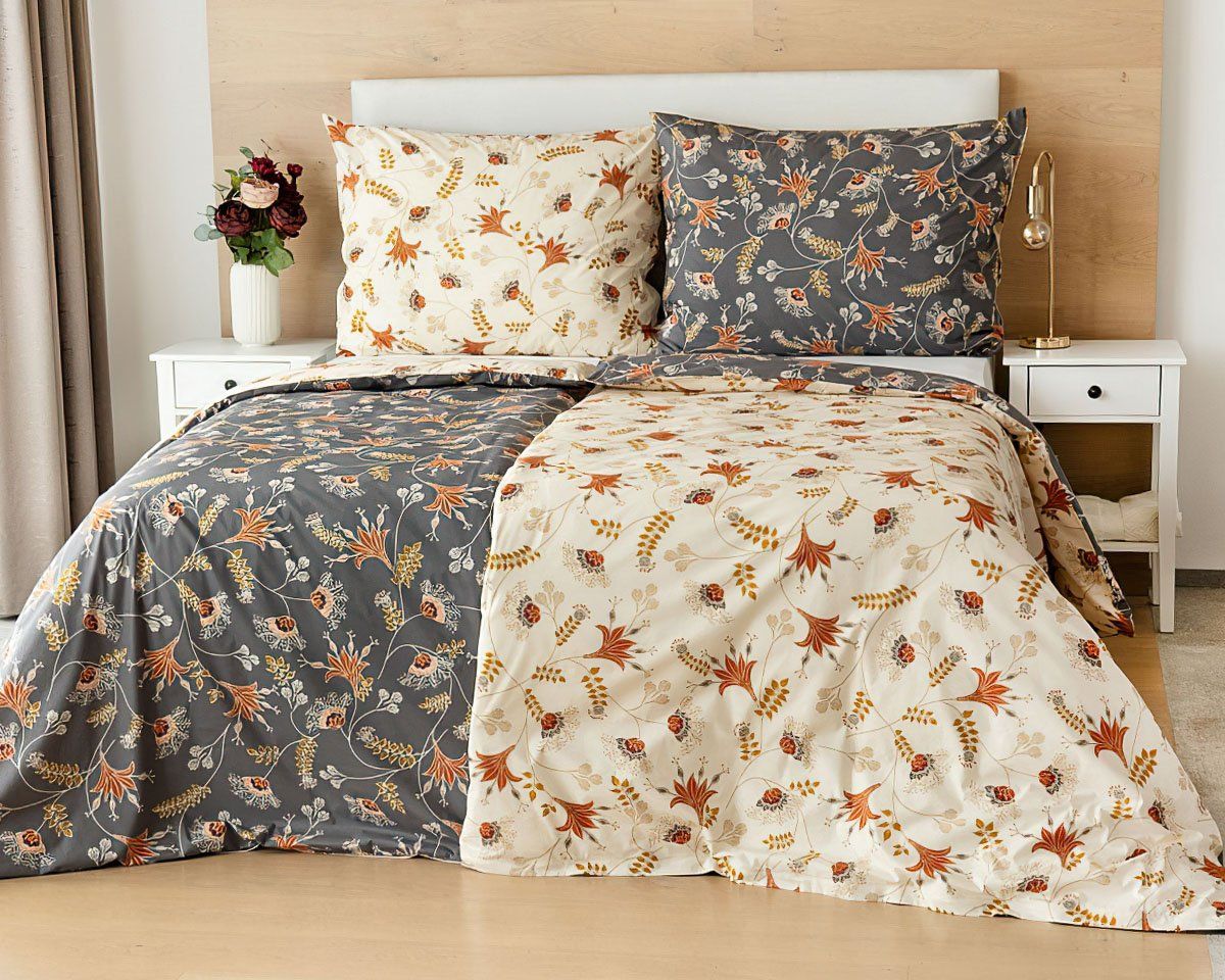 Povlečení s florálním vzorem v béžové barvě. Povlečení je oboustranné. Z druhé strany je stejný florální vzor na šedém podkaldu. Souprava je vyrobena ze 100% bavlny a obsahuje povlak na přikrývku a povlak na polštář. Zapínání na zip.Povlečení z kolekce Matějovský ze 100% bavlny. U povlečení z kolekce Matějovský je použit vysoce kvalitní materiál se speciální úpravou, díky které je pevnější a zachová si svůj tvar i po mnoha vypráních. Díky speciální technice tisku je také zaručena barevná stálost. Povlečení doporučujeme prát na 40°C tiskem dovnitř, při nastavení nižších otáček ždímání si také usnadníte žehlení s výjimkou krepového povlečení, které se nežehlí. Vyberte si to pravé právě pro Vás!
