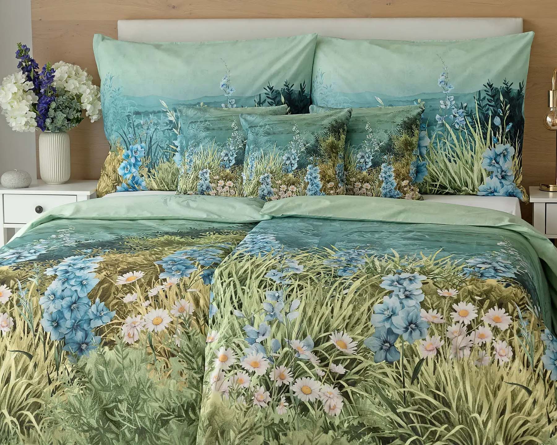 Povlečení Matějovský FREDA, horská louka, zeleno-modré, bavlna hladká digitál, (více rozměrů)