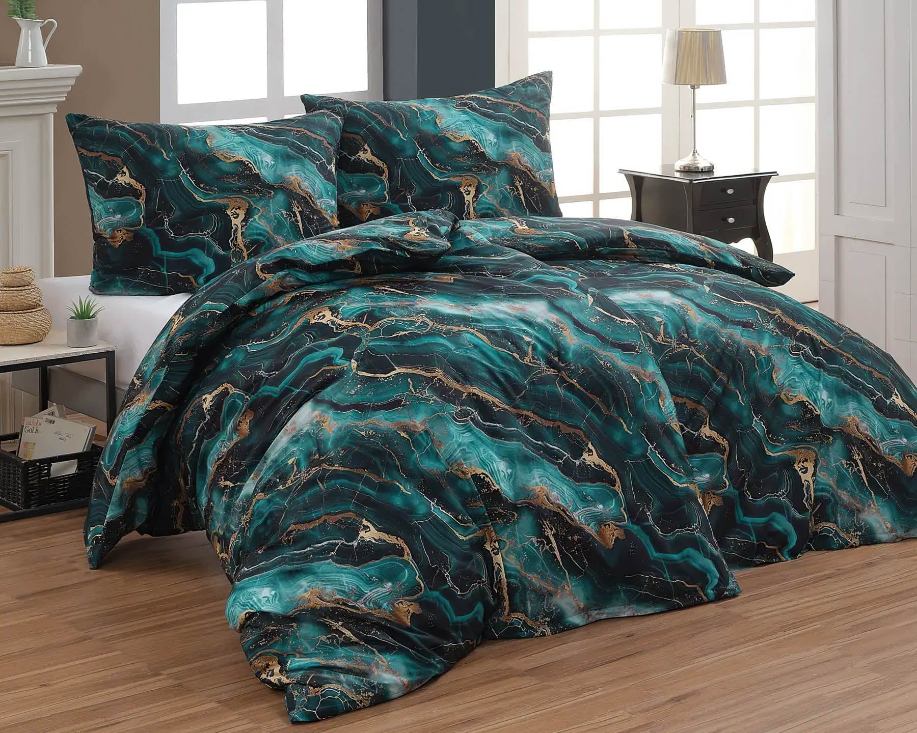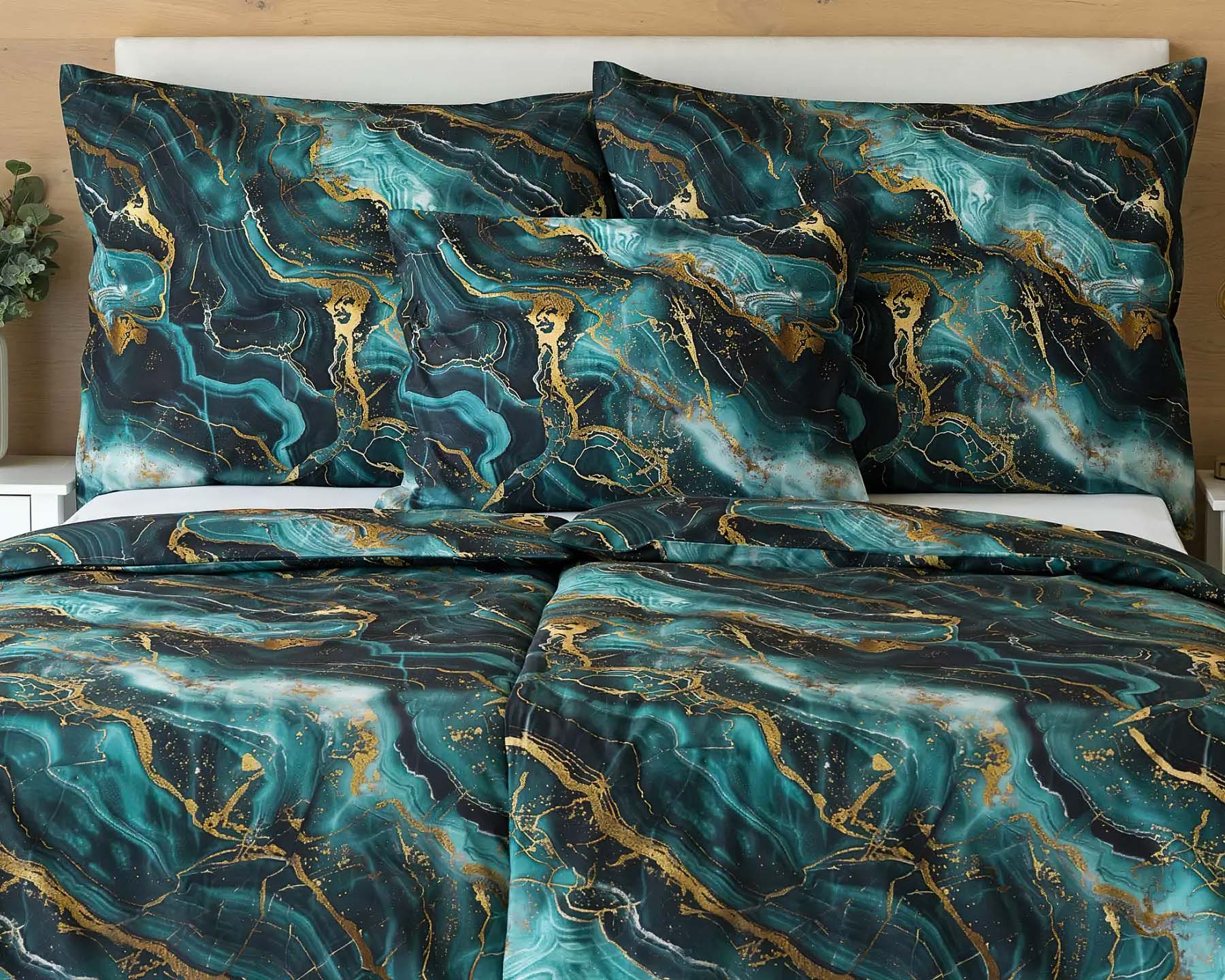 Bavlněné povlečení s dynamickým vzorem ve smaragdových barvách. Povlak na přikrývku i povlak na polštář jsou z obou stran stejné. Souprava je vyrobena ze 100% bavlny. Zapínání na zip. Vzor je tištěn nejmodernějším digitálním tiskem, který zajišťuje vysoce precizní detail.Povlečení z kolekce Matějovský ze 100% bavlny. U povlečení z kolekce Matějovský je použit vysoce kvalitní materiál se speciální úpravou, díky které je pevnější a zachová si svůj tvar i po mnoha vypráních. Díky speciální technice tisku je také zaručena barevná stálost. Povlečení doporučujeme prát na 40°C tiskem dovnitř, při nastavení nižších otáček ždímání si také usnadníte žehlení s výjimkou krepového povlečení, které se nežehlí. Vyberte si to pravé právě pro Vás!