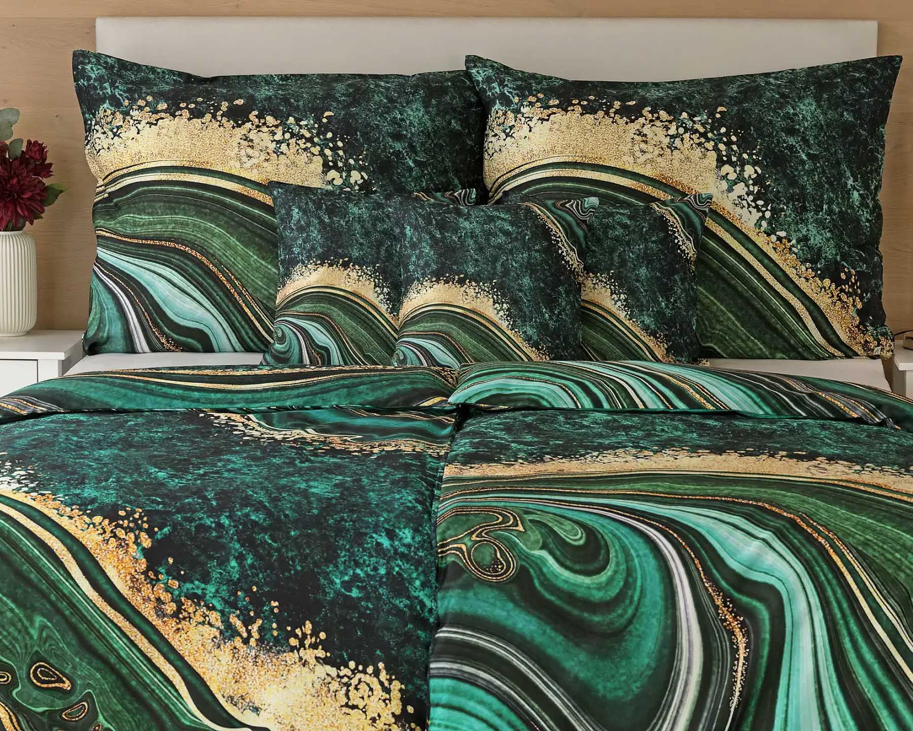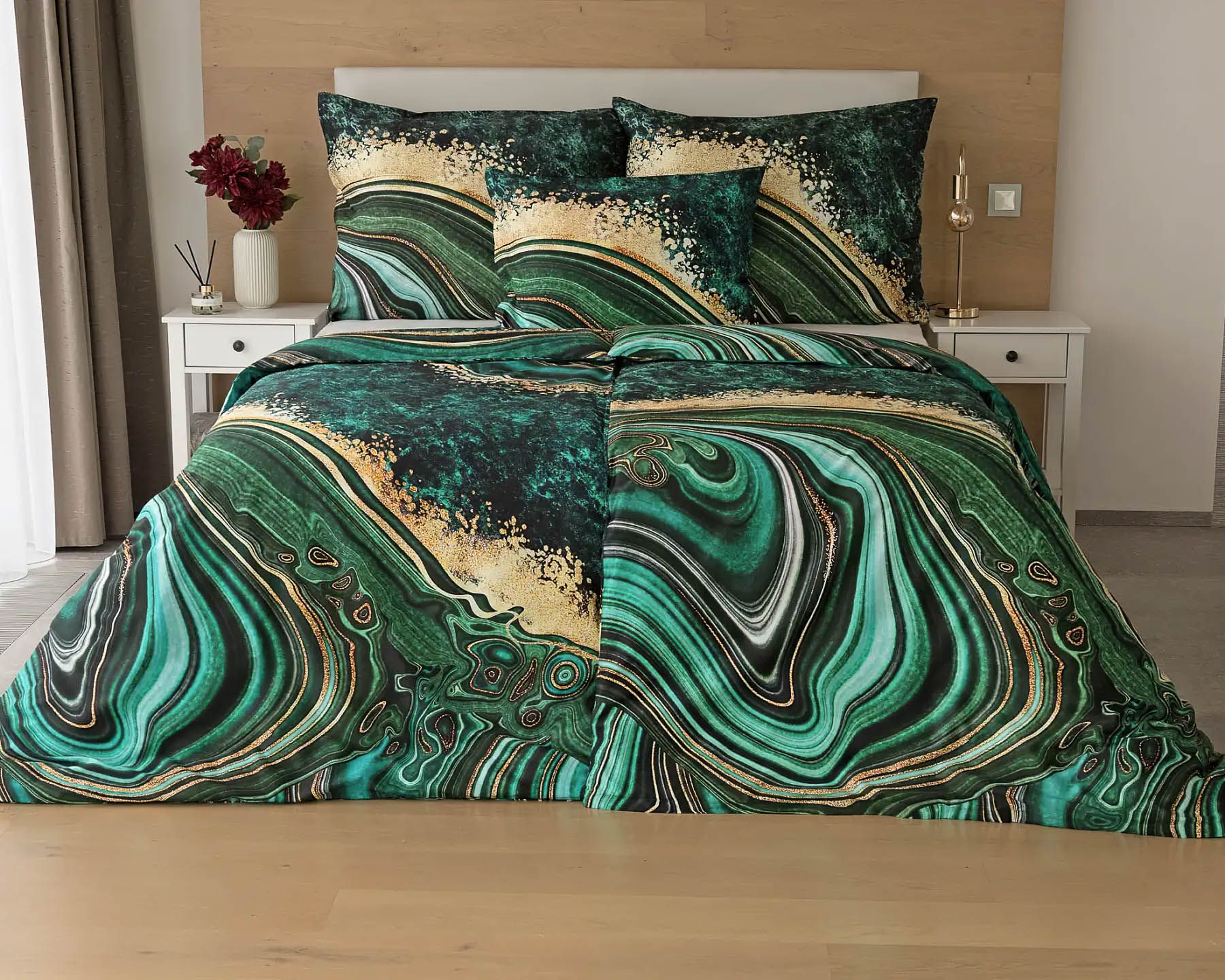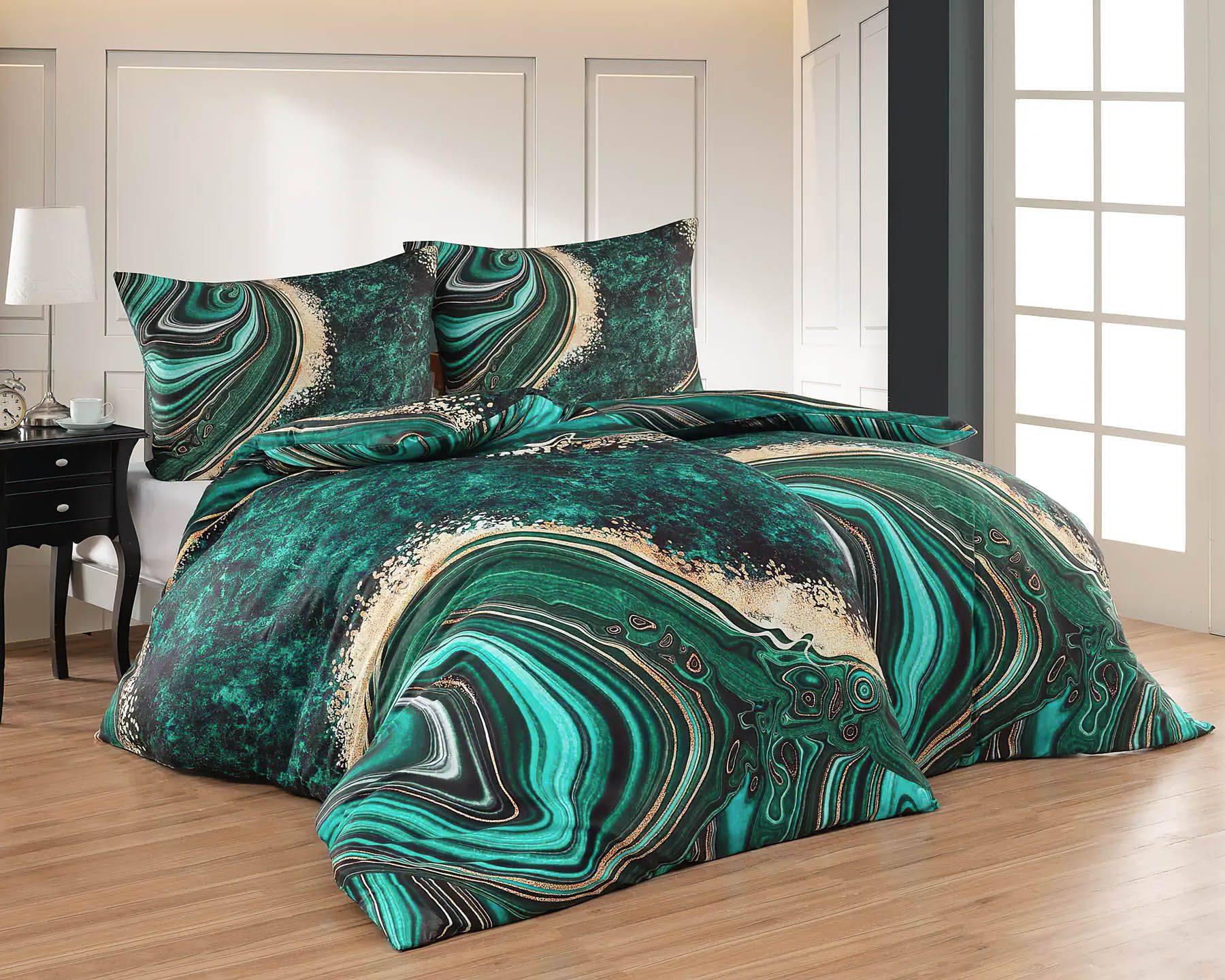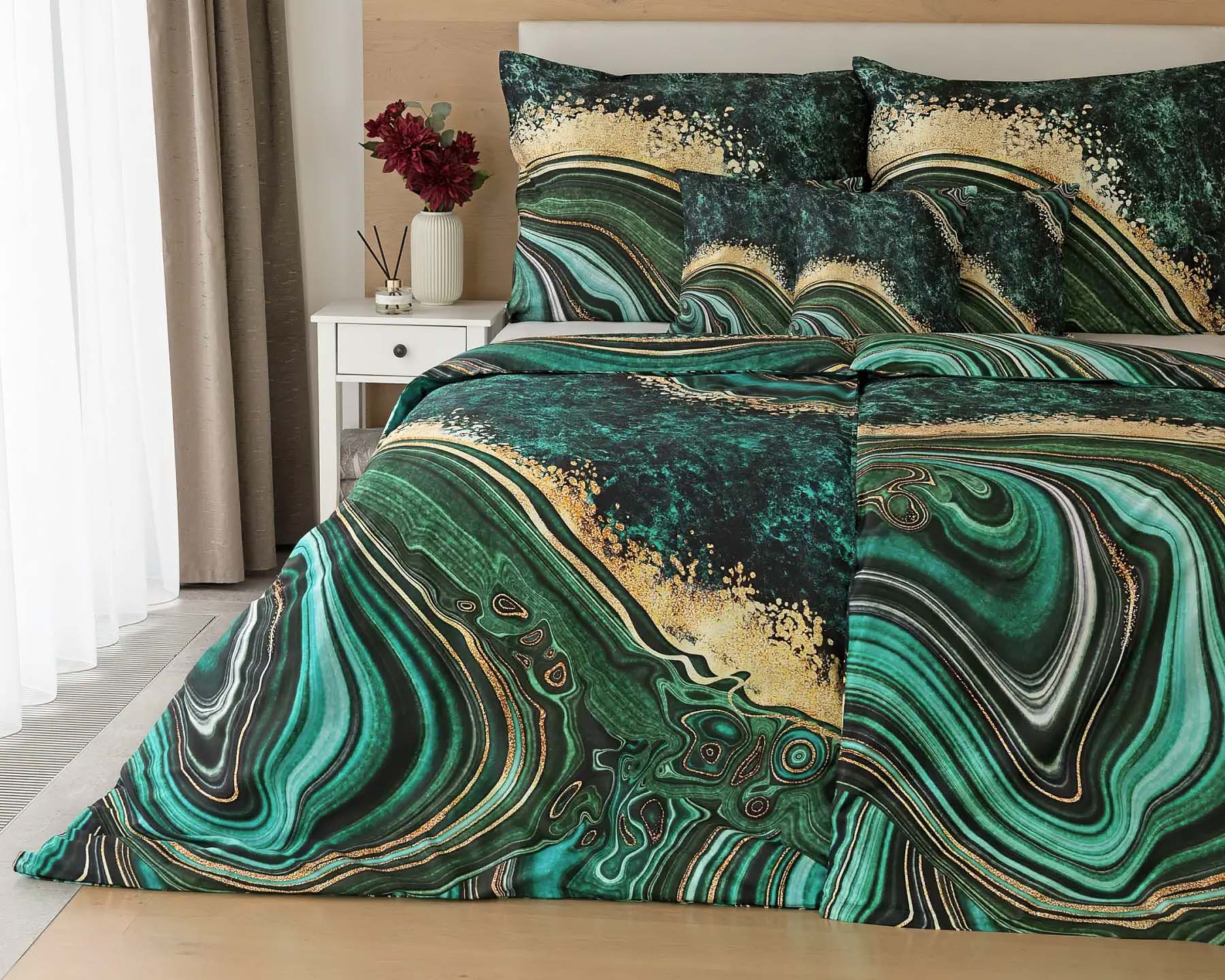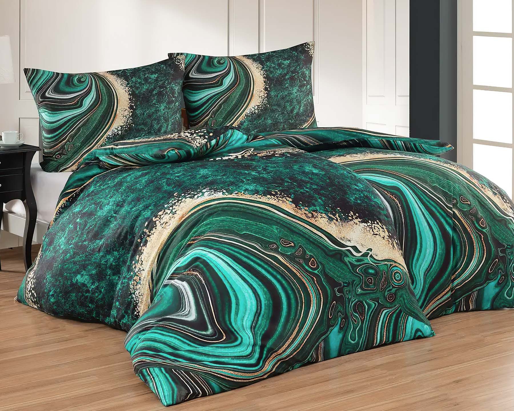 Povlečení Matějovský METHEORA, abstraktní motiv, zelené, bavlněný satén, digitál, 140x200cm + 70x90cm