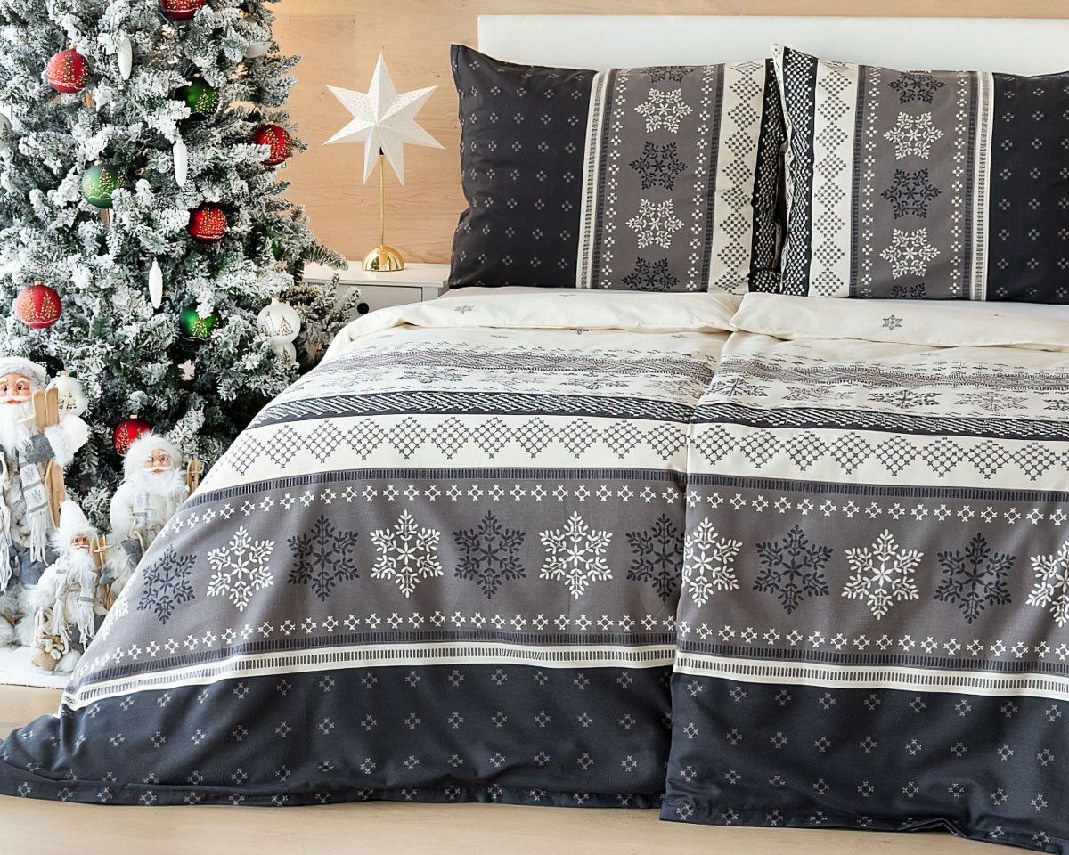 Povlečení Matějovský SCANDIC, severský vzor s vločkami, hnědo-smetanové, bavlna hladká, 140x200cm + 70x90cm