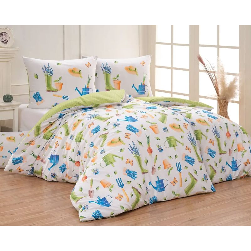 Povlečení Matějovský ZAHRÁDKA, zeleno-bílé, bavlna hladká, digitál, 140x200cm + 70x90cm