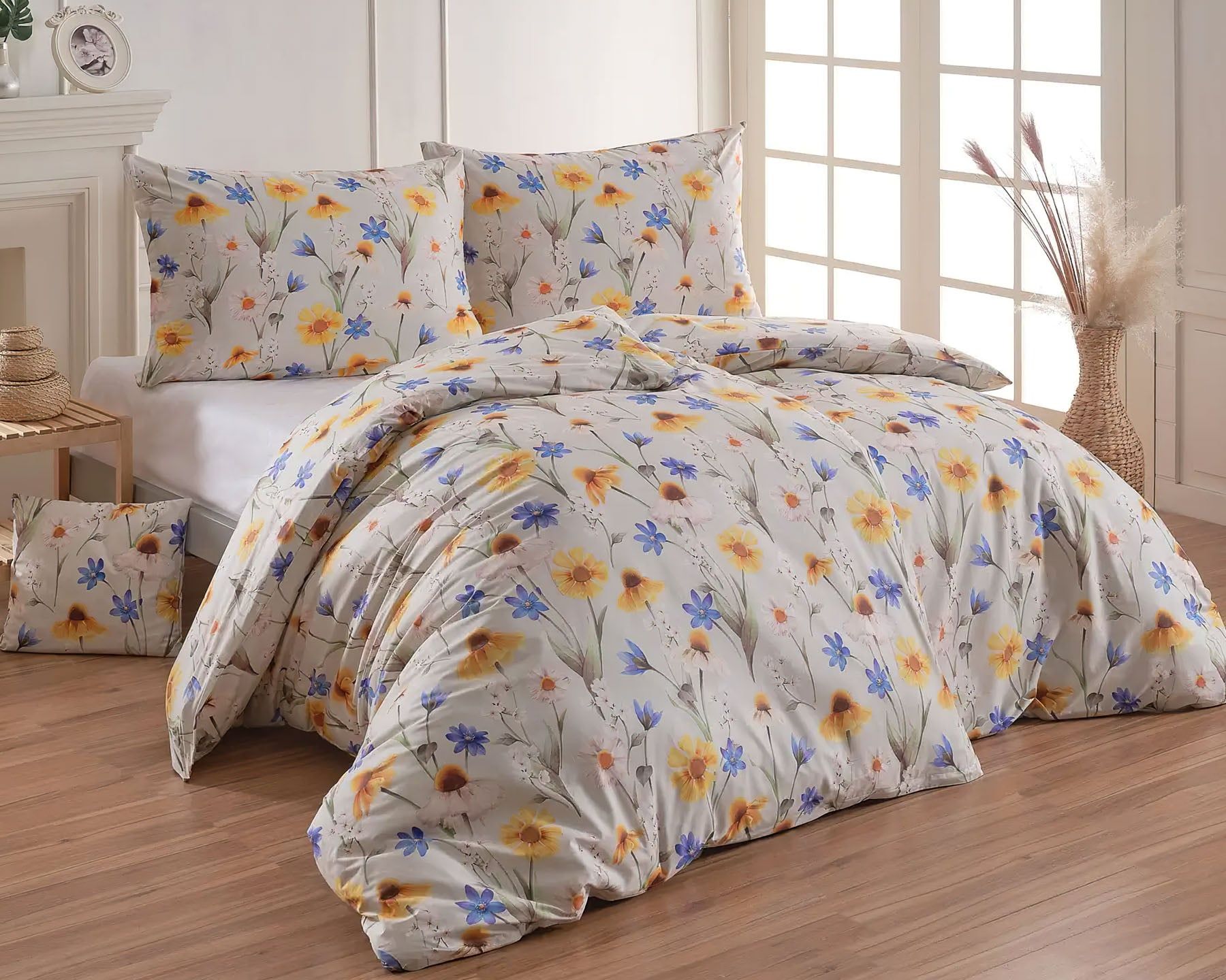 Povlečení Matějovský ZARIA, květinový vzor, žluto-modré, bavlna hladká digitál, (více rozměrů)