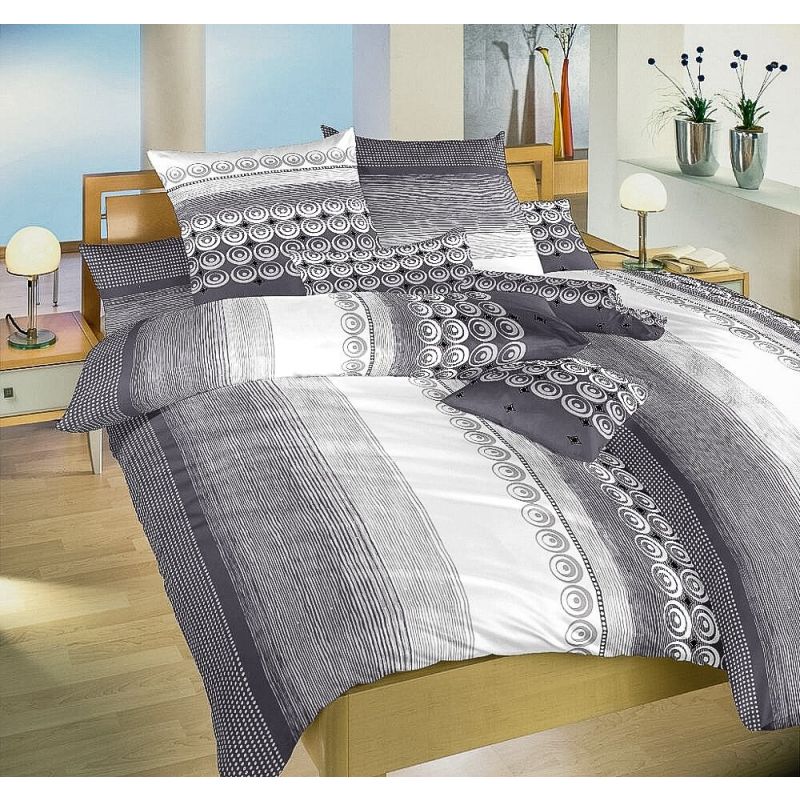 Povlečení SAHARA ŠEDÁ, pruhy a kroužky, krep, 140x200cm + 70x90cm