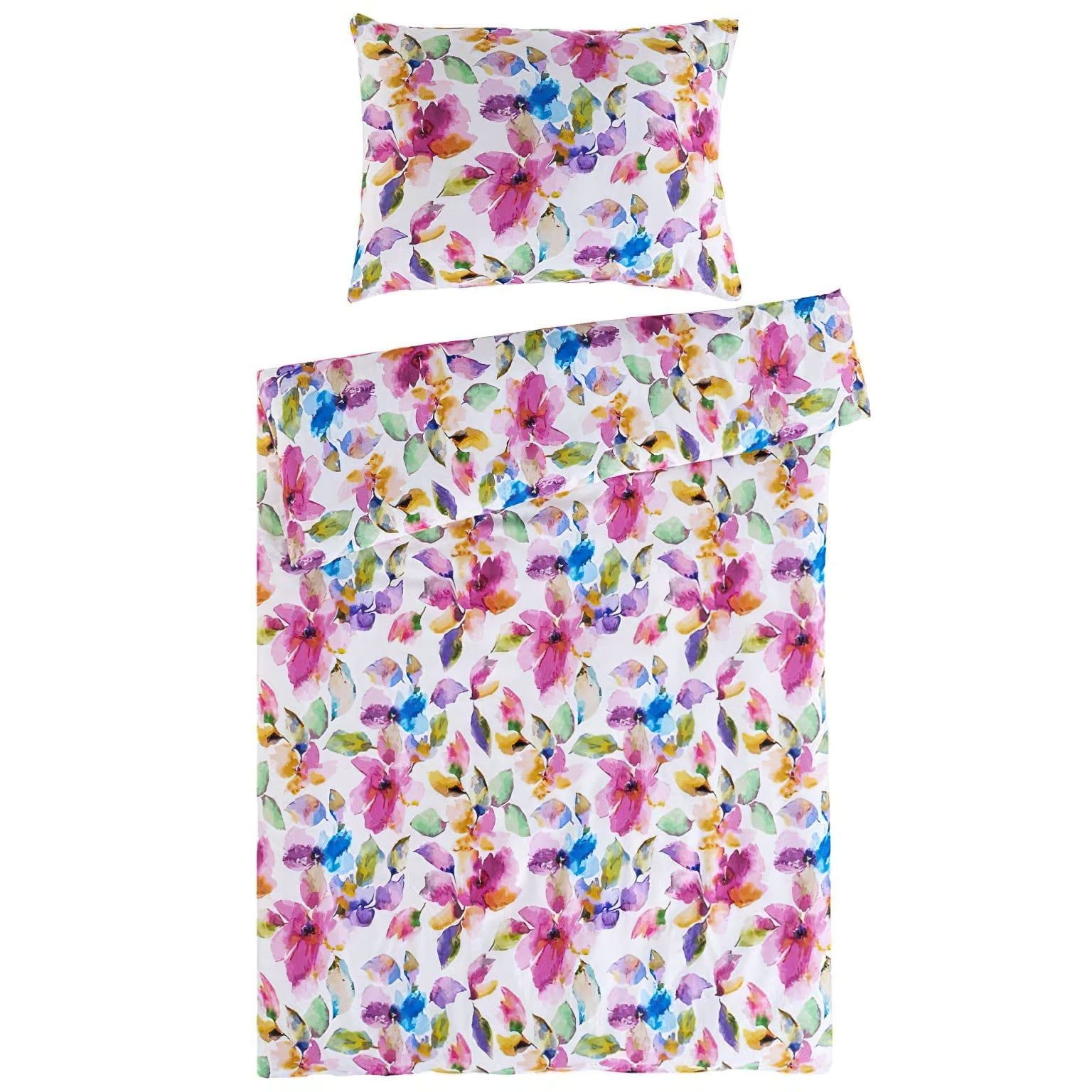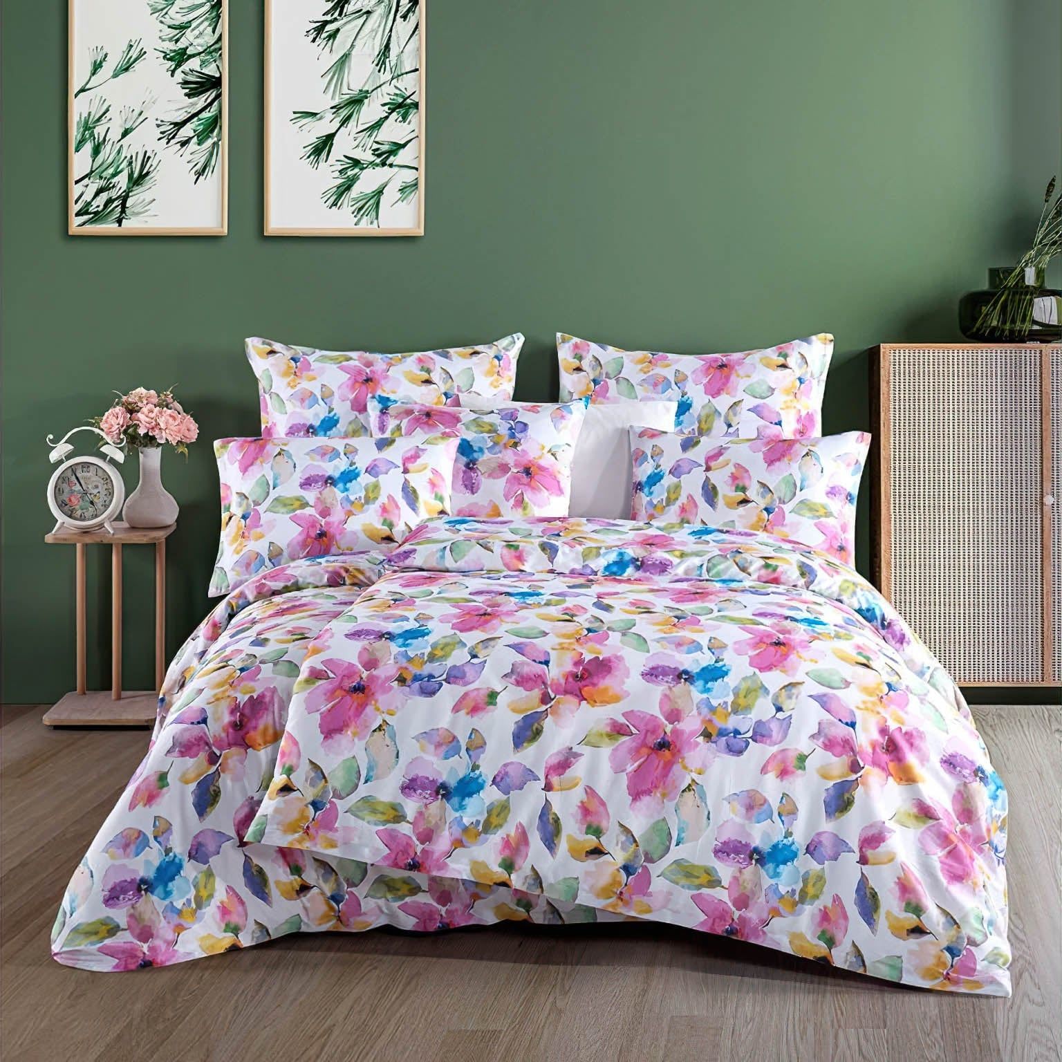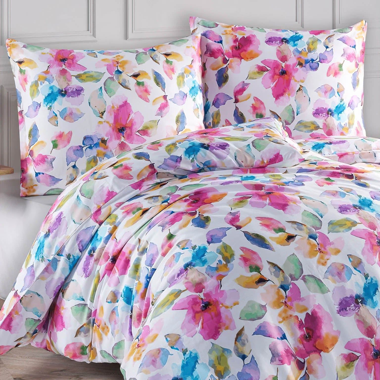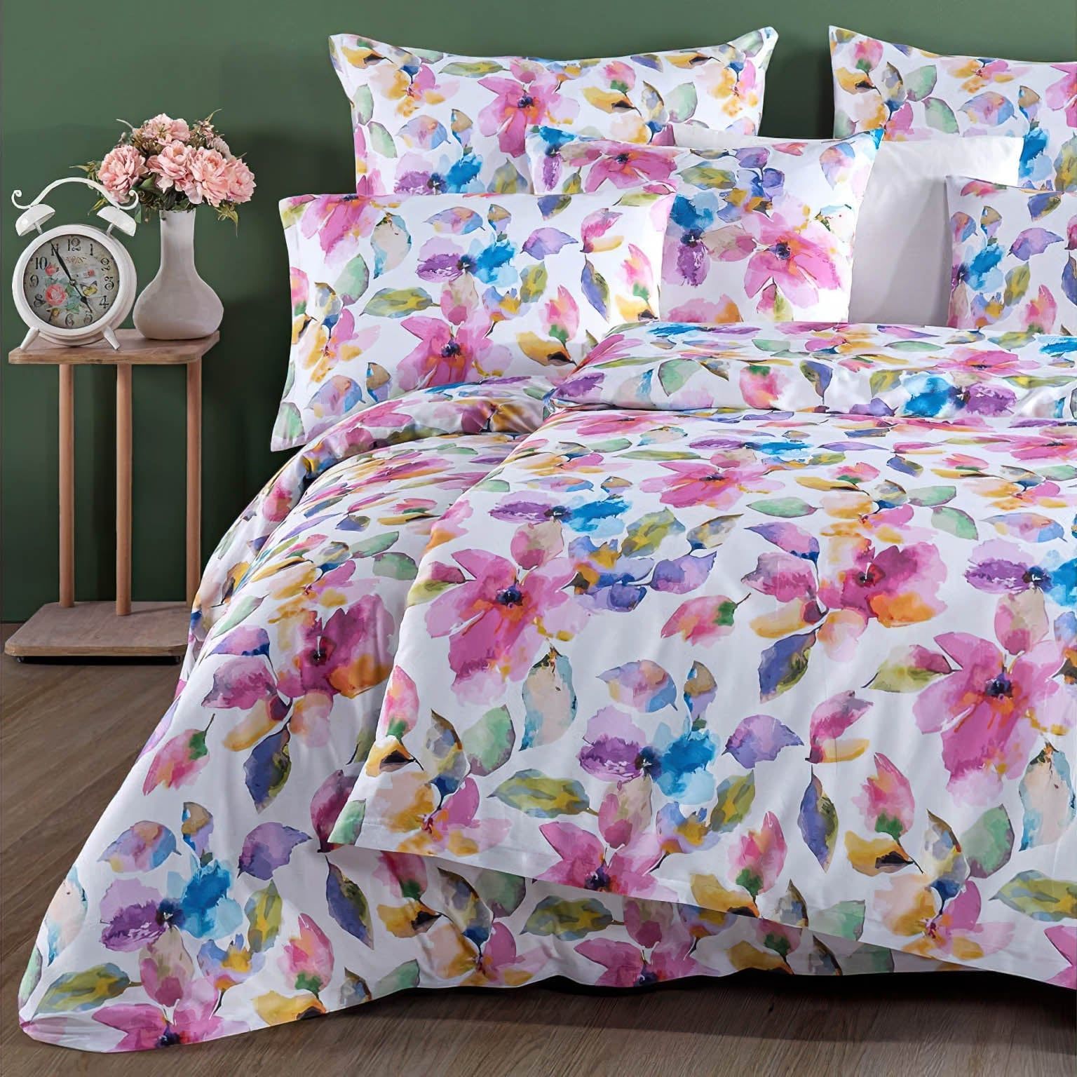 Povlečení VIBRANCE, barevné květy, růžové, bavlněný satén, 140x200cm + 70x90cm