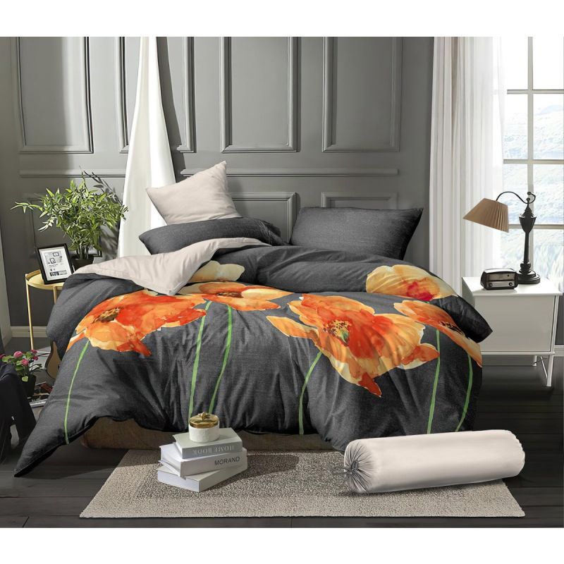 Povlečení VLČÍ MÁKY mikroflanel, červenooranžová-šedá 140x200cm + 70x90cm