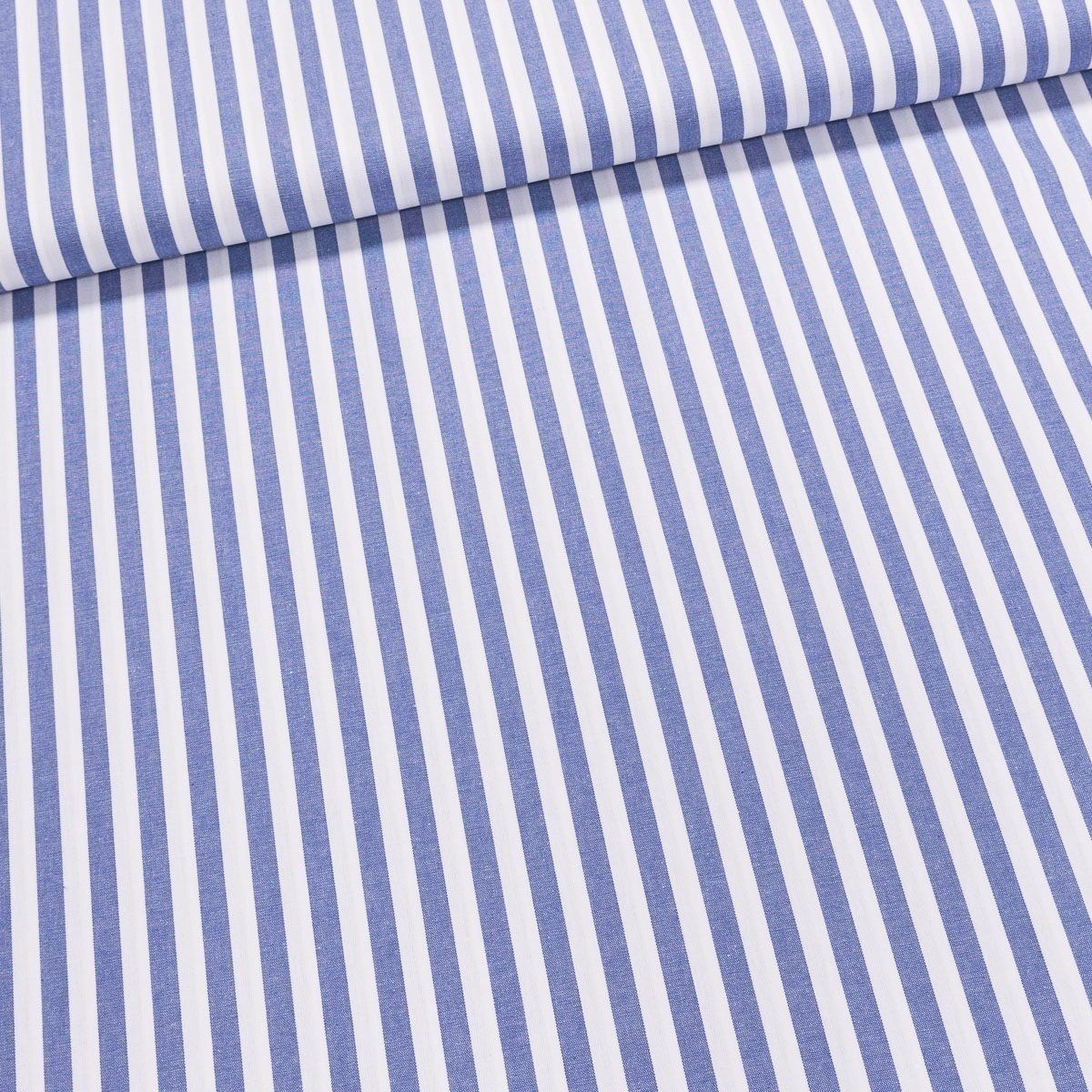 Bavlněný kanafas od českého výrobce proužkovaný, pestře tkaný (1 cm) v riflově modré barvě. Látka je v šířce 140 cm, vyr...