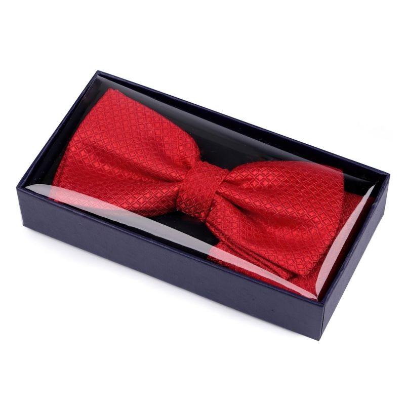 Motýlek pánský s kapesníčkem 870587/3 vzorovaný, červený / kostičky
