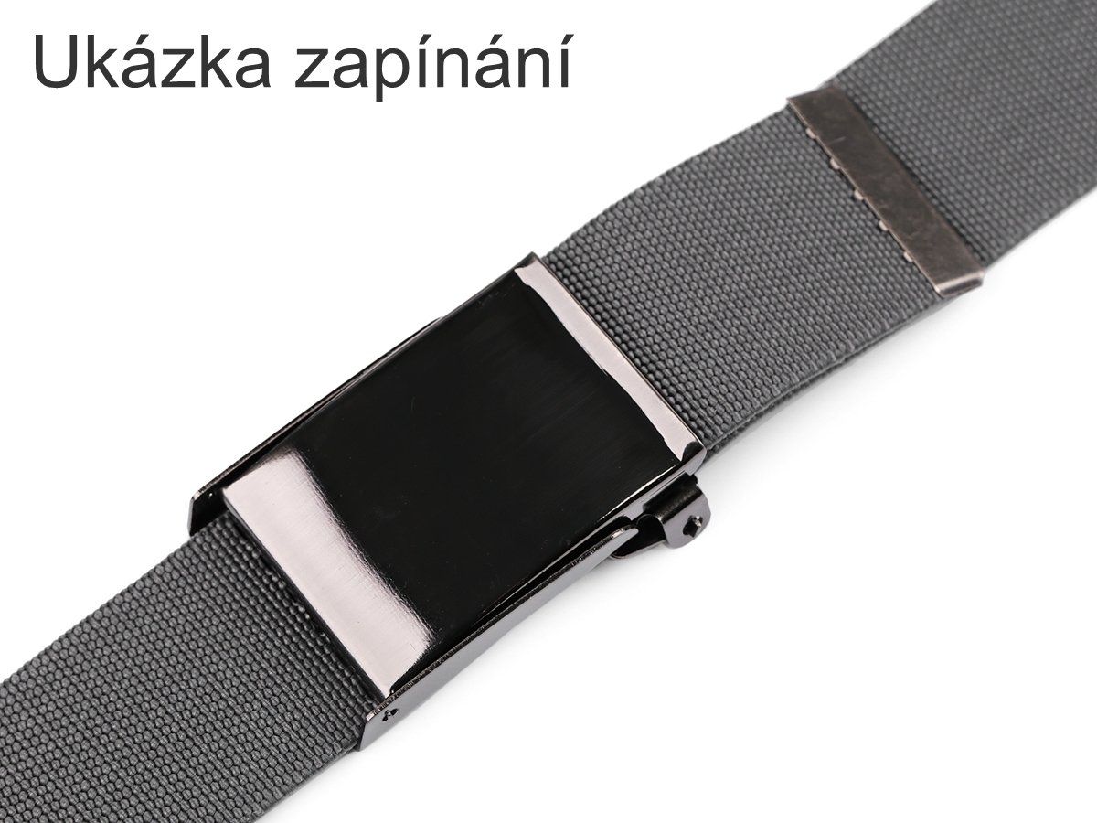 Pružný provlékací unisex opasek s kovovou rychlosponou s automatickým zapínáním v červené barvě je vhodný pro muže i ženy. Pásek vyrobený z textilního popruhu s příměsí elastanu, díky čemuž je částečně pružný a lze jej zapnout na jakoukoliv délku. Provlečením pásku sponou pásek a protipohybem pásek zapnete. Tento pásek je vhodný jako volnočasový pro běžné nošení, k jeansům nebo i do přírody. Šířka opasku je 3,8 cm a délka 126 cm, vyroben je z polyesteru s příměsí elastanu.