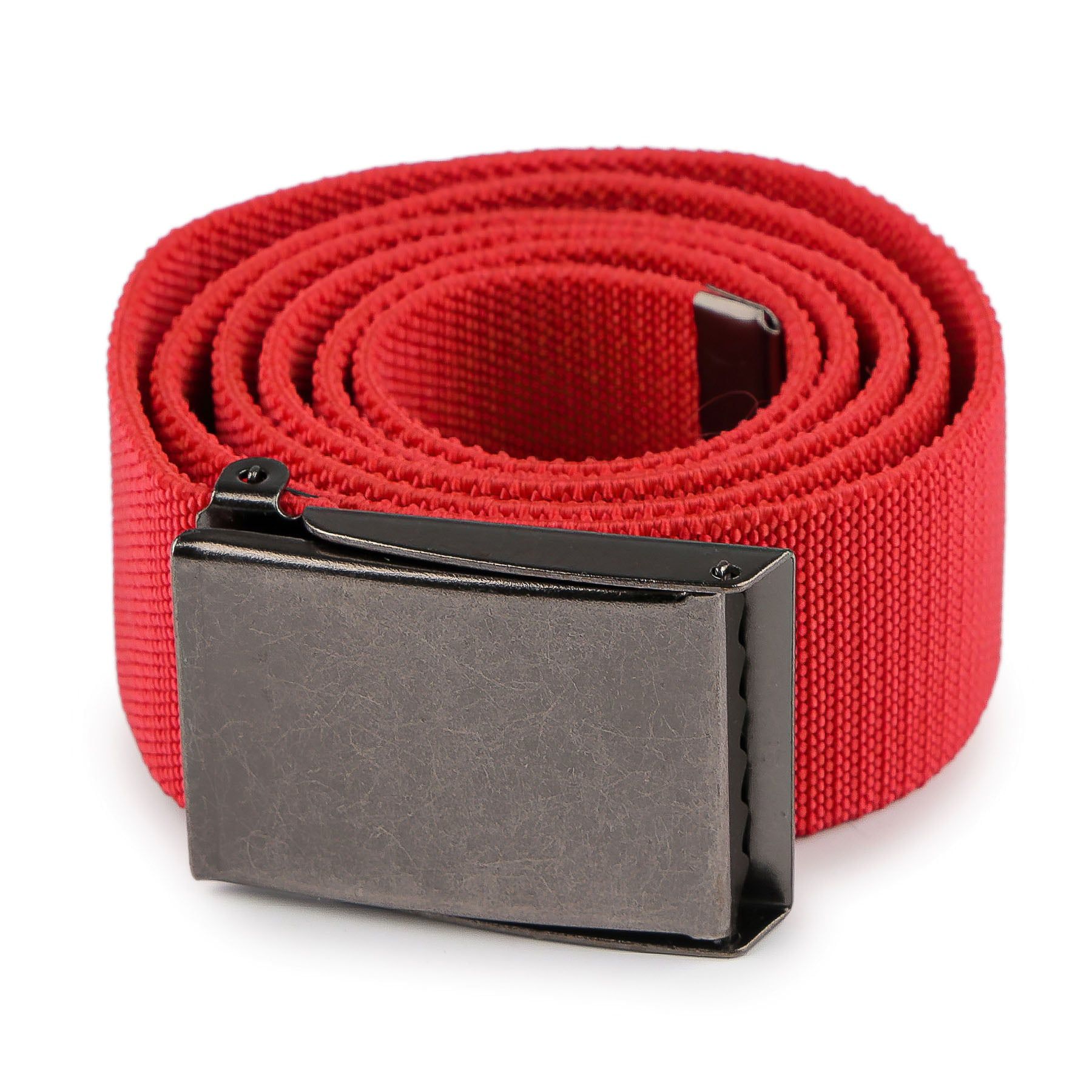 Pružný provlékací unisex opasek s kovovou rychlosponou s automatickým zapínáním v červené barvě je vhodný pro muže i žen...