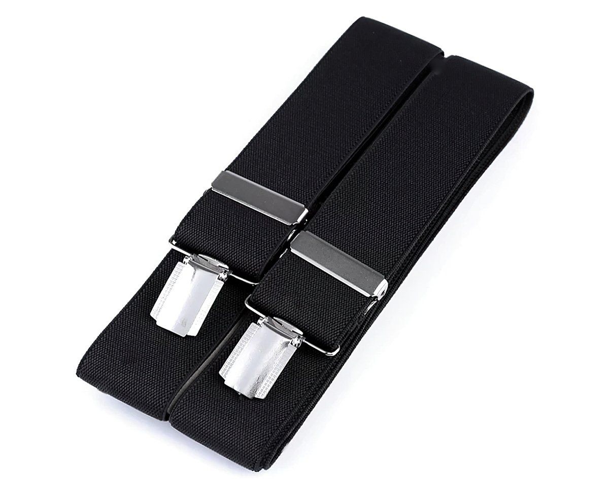 Pánské šle v černé barvě s nastavitelnou délkou 120 cm, šíře 3,5cm v provedení ve tvaru písmene "Y" s uchycením na žabky...