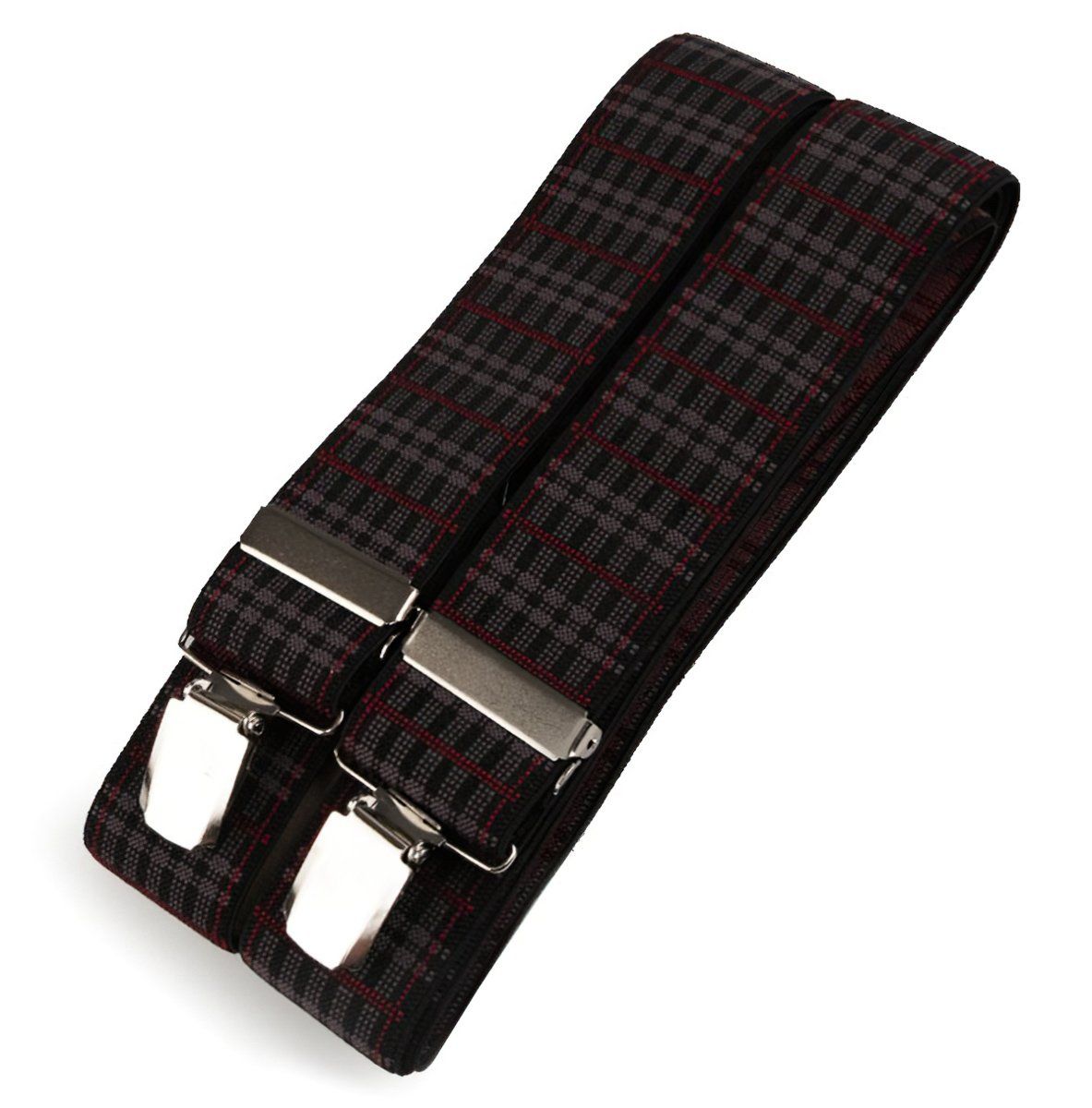 Pánské šle černé s šedým kárem s nastavitelnou délkou 125 cm, šíře 3,5 cm v provedení ve tvaru písmene "X" s uchycením n...