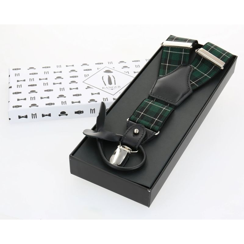 Šle pánské RANGER Dg35.022, délka 120cm, šíře 3,5cm, tvar Y, černozelené káro