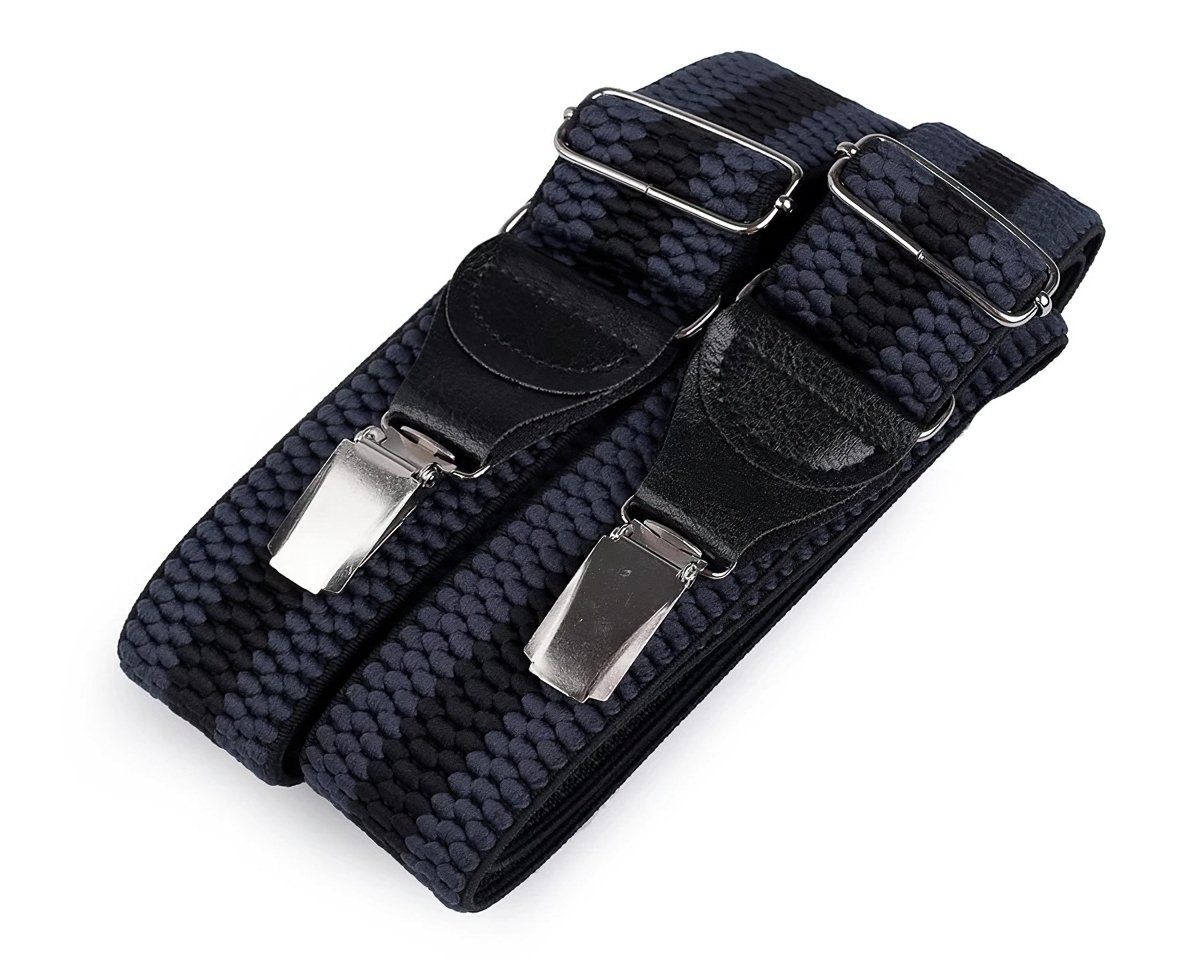 Pánské šle v texturovaném provedení se vzorem pruhů v tmavě modré barvě s nastavitelnou délkou 120 cm, šíře 4 cm v prove...