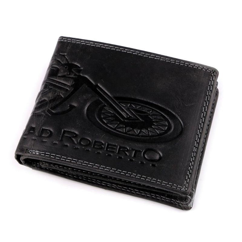 Pánská kožená motorkářská peněženka s RFID ochranou, 870349/26, černá-motorka, 9,5 x 15 x 3,5 cm