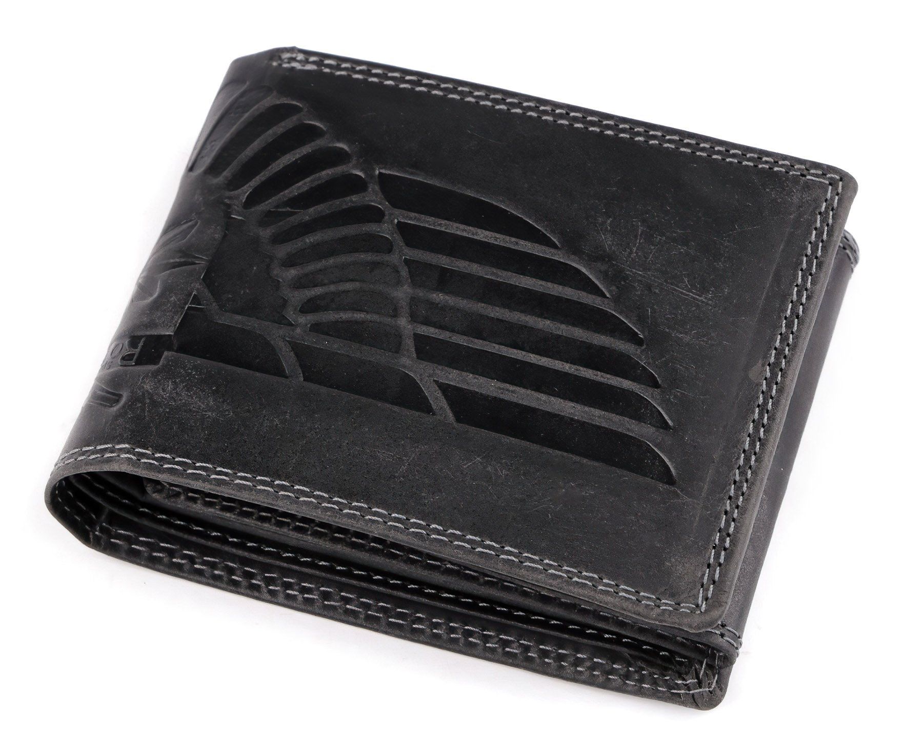 Luxusní pánská peněženka z pravé kůže v černé barvě s vyraženým vzorem křídla s RFID ochranou proti skenování platebních...
