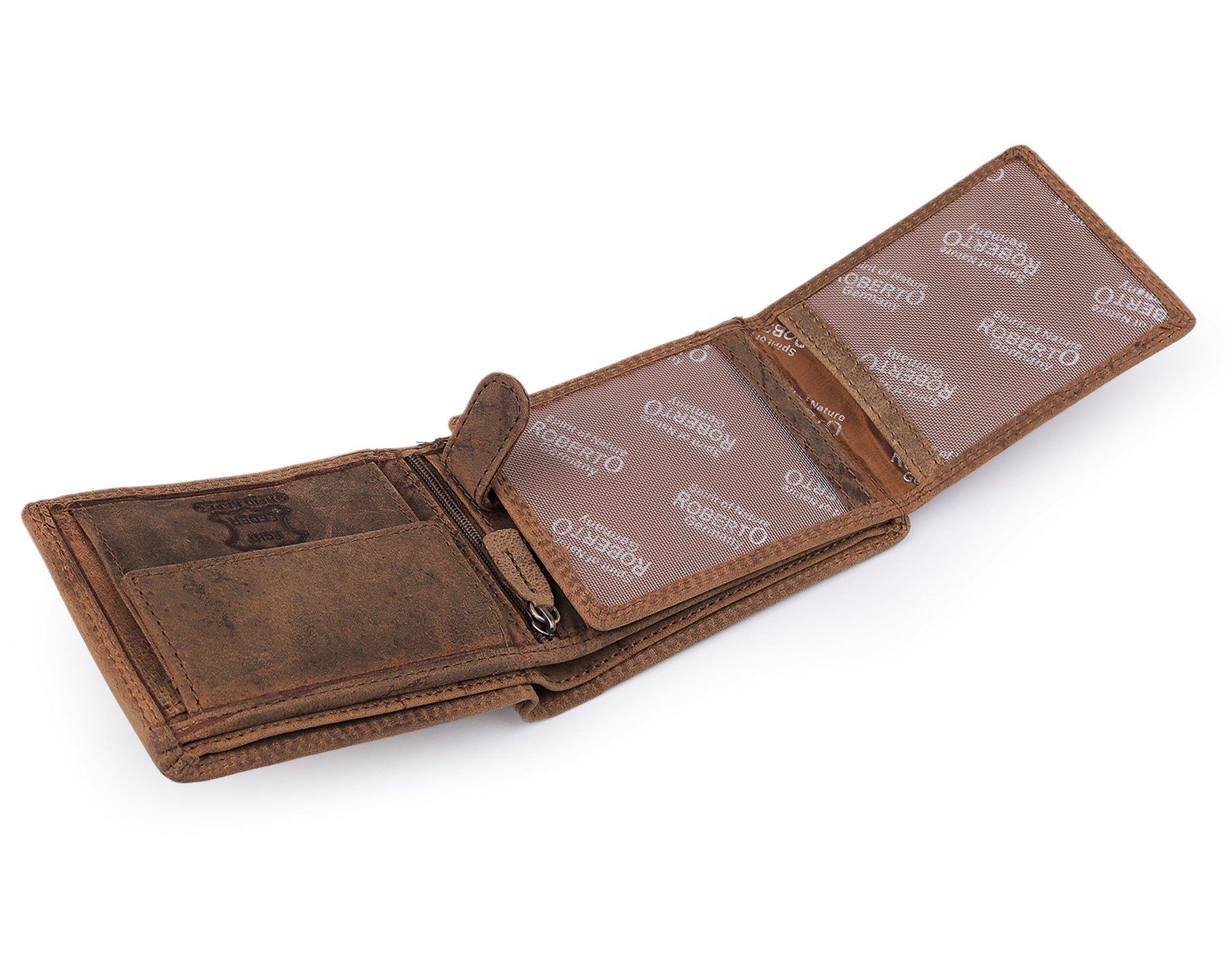 Pánská kožená myslivecká peněženka s RFID ochranou, 870349/17, hnědá - jelen, matná, 9,5 x 15 x 3,5 cm