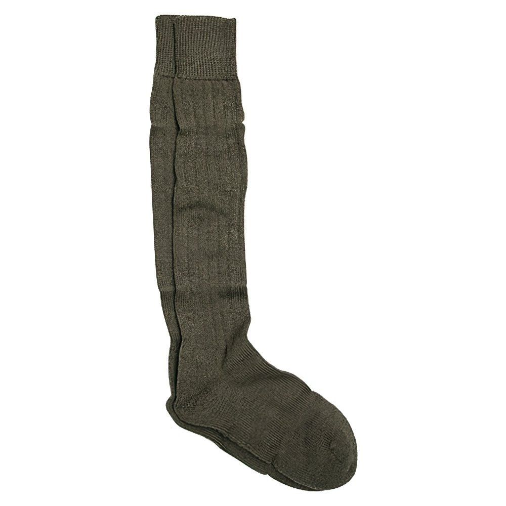 Pletené vysoké podkolenky typu Bundeswehr v provedení nad kolena v khaki zelené barvě. Tyto podkolenky jsou teplé a pohodlné díky použití kombinace materiálů 40 % vlna a 60 % polyamid a širokému hornímu lemu. Ponožky jsou vhodné pro myslivce, rybáře, příznivce military nebo jako teplý základ do bot a gumáků při procházkách v lese či práci na zahradě v zimním období. Ponožky jsou dostupné ve více velikostech a jsou vhodné pro muže i ženy.