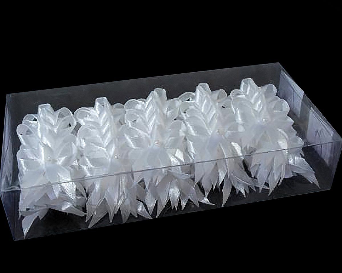 Ručně vyráběná svatební mašlička z bílého saténu se dvěma stuhami (šíře 6 mm), ozdobnou perličkou a špendlíkem. Tradiční vývazek, který si v den svatby připínají na oblečení ženich i svatebčané. Dá se doplnit větvičkou myrty. Prodává se po 1 kuse.