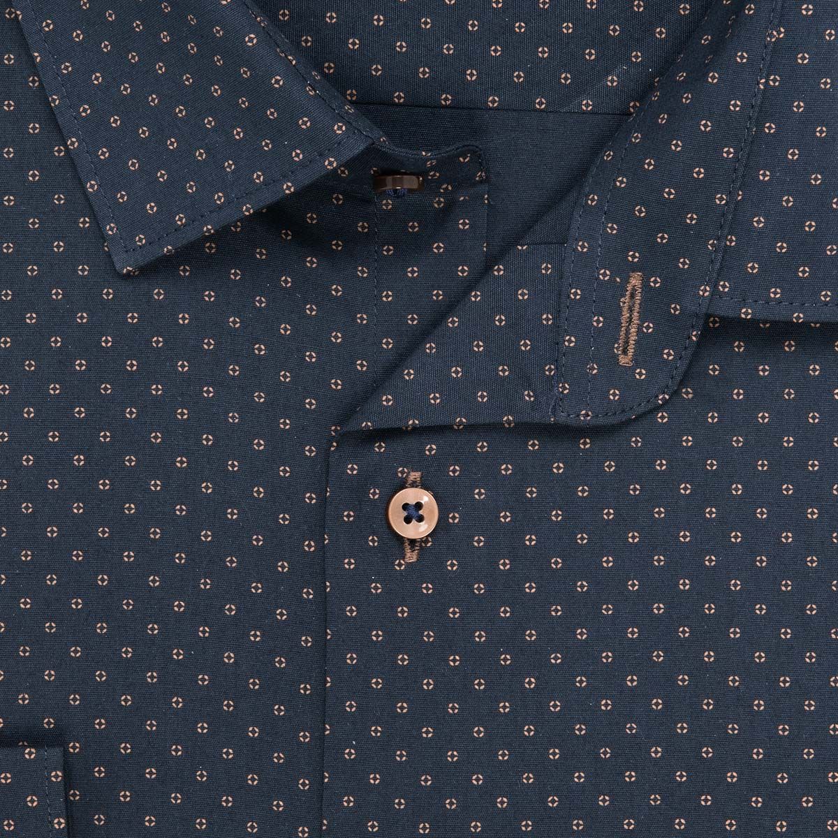 Módní pánská vzorovaná košile s dlouhým rukávem a tištěným vzorem. Košile je vhodná jak do obleku s kravatou, tak pro běžné nošení. Díky použití kvalitního materiálu (100% bavlna) Vám bude v košili velmi příjemně. Díky nové moderní úpravě „EASY CARE“ se košile méně krčí a její žehlení je o hodně snadnější. Košili je možné prát na 40°C běžným pracím programem (není vhodné sušení v sušičce). Košile je již vysrážená, při dodržení pokynů k praní se nesrazí. Budete-li prát na nízké otáčky, práci s žehlením si u této košile můžete skoro odpustit.