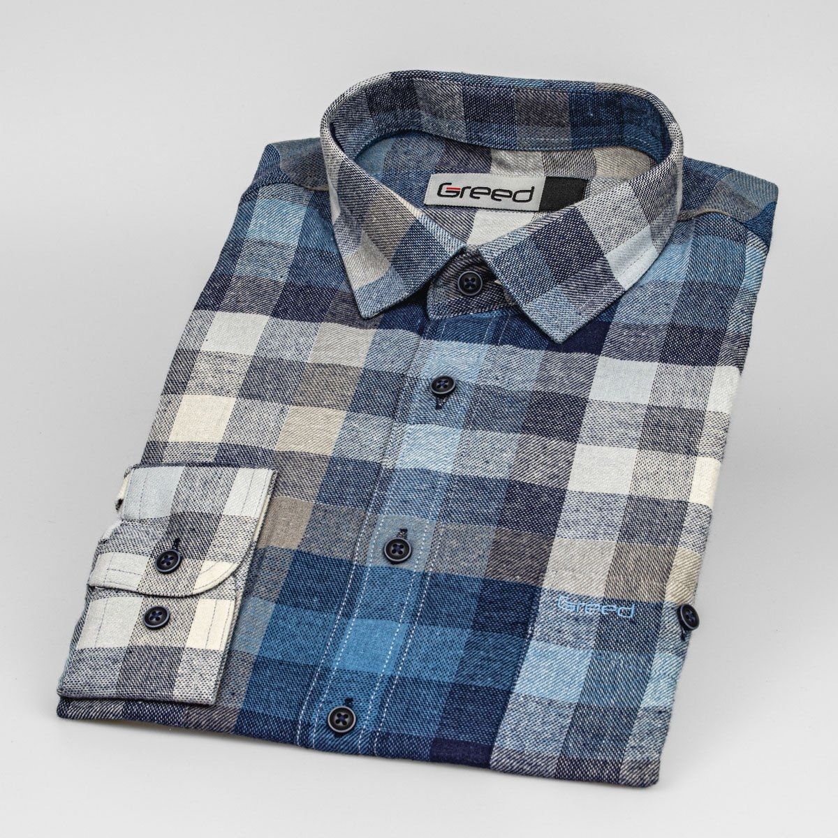 Pánská flanelová károvaná košile GREED s dlouhým rukávem. Pánská košile v modro-béžové kombinaci v károvaném vzoru. Košile se hodí pro neformální příležitosti k džínsům. Díky použití kvalitního materiálu (100% bavlna) Vám bude v košili velmi příjemně.