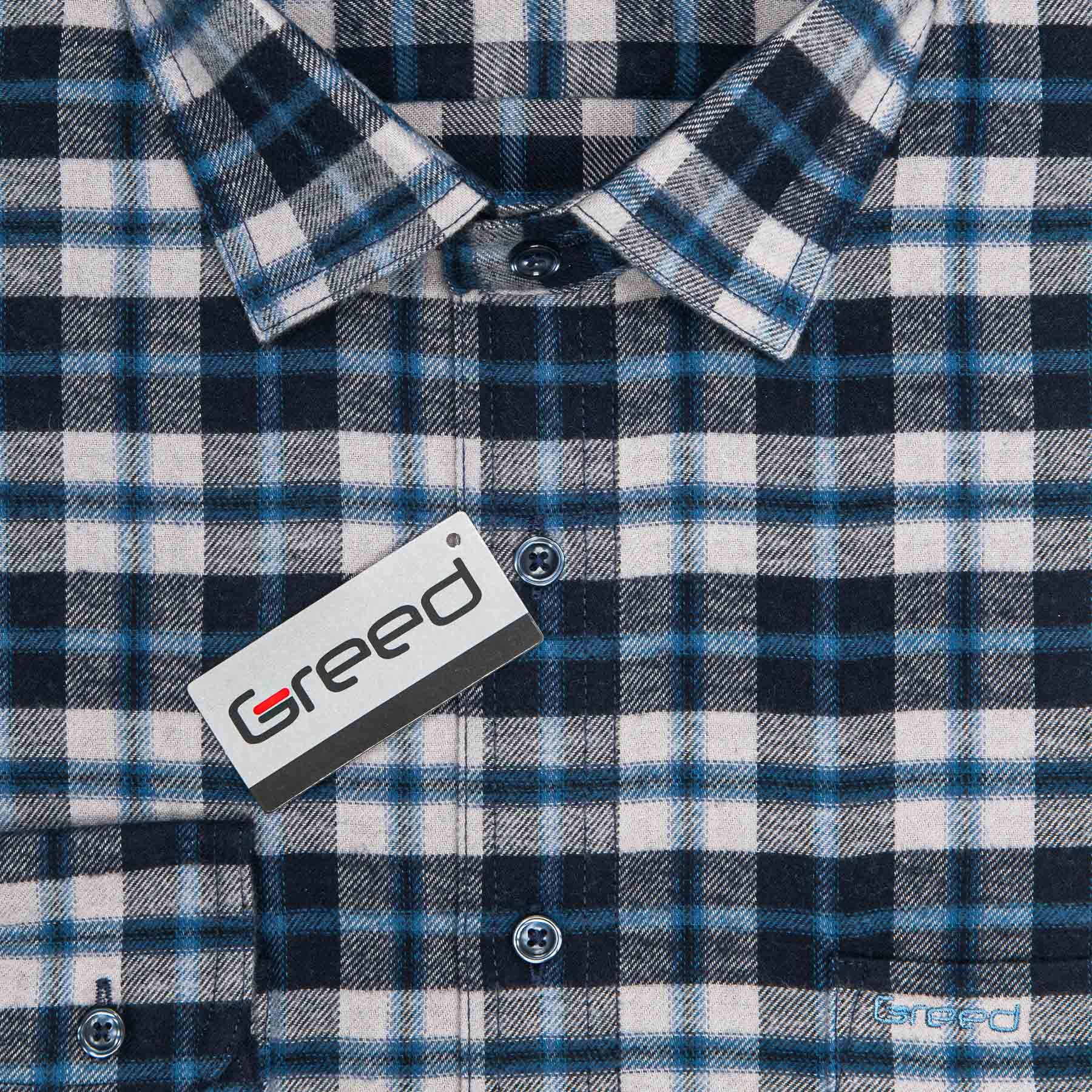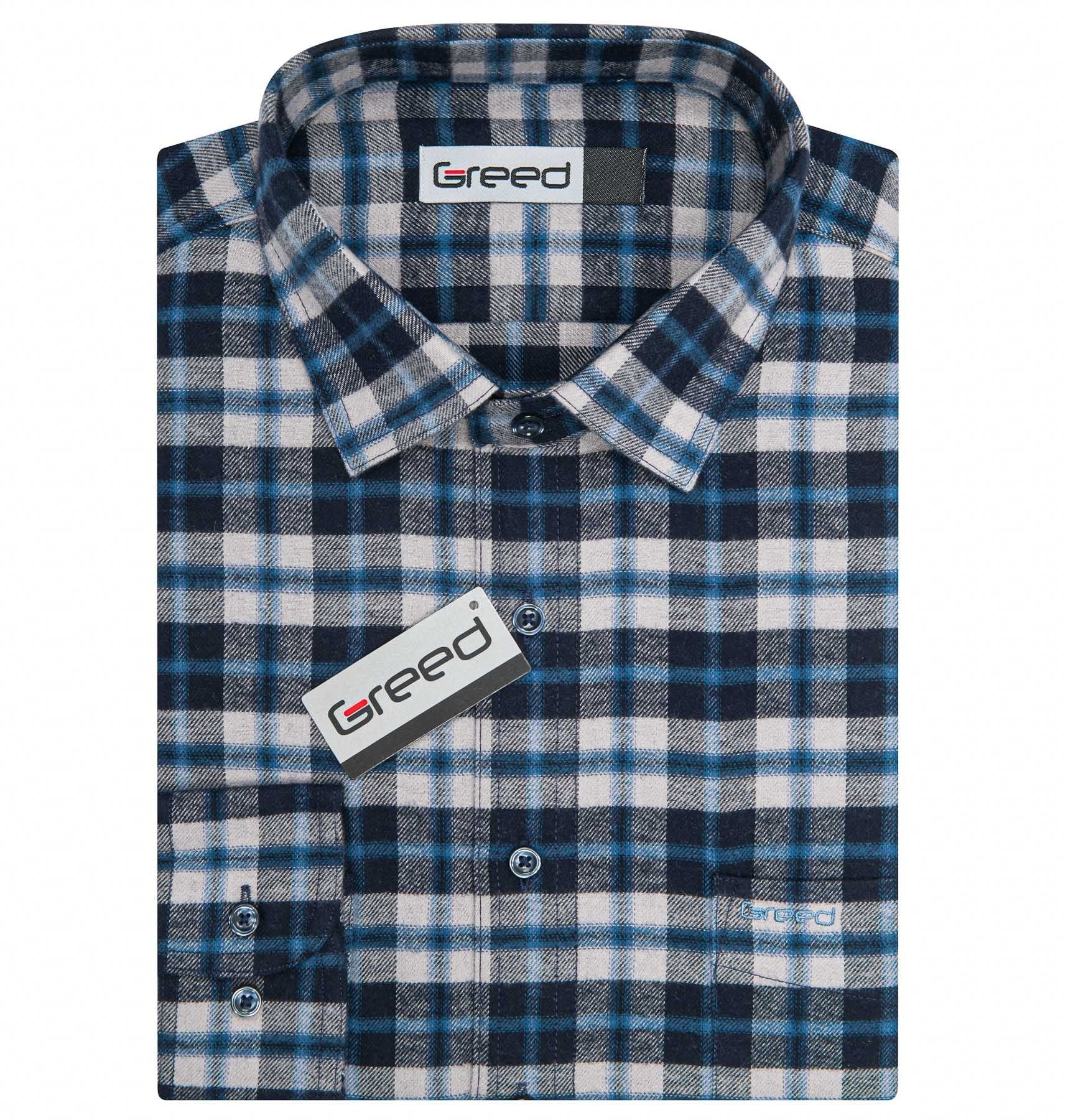Pánská flanelová károvaná košile GREED s dlouhým rukávem. Pánská košile v modro-šedé kombinaci v károvaném vzoru. Košile se hodí pro neformální příležitosti k džínsům. Díky použití kvalitního materiálu (100% bavlna) Vám bude v košili velmi příjemně.