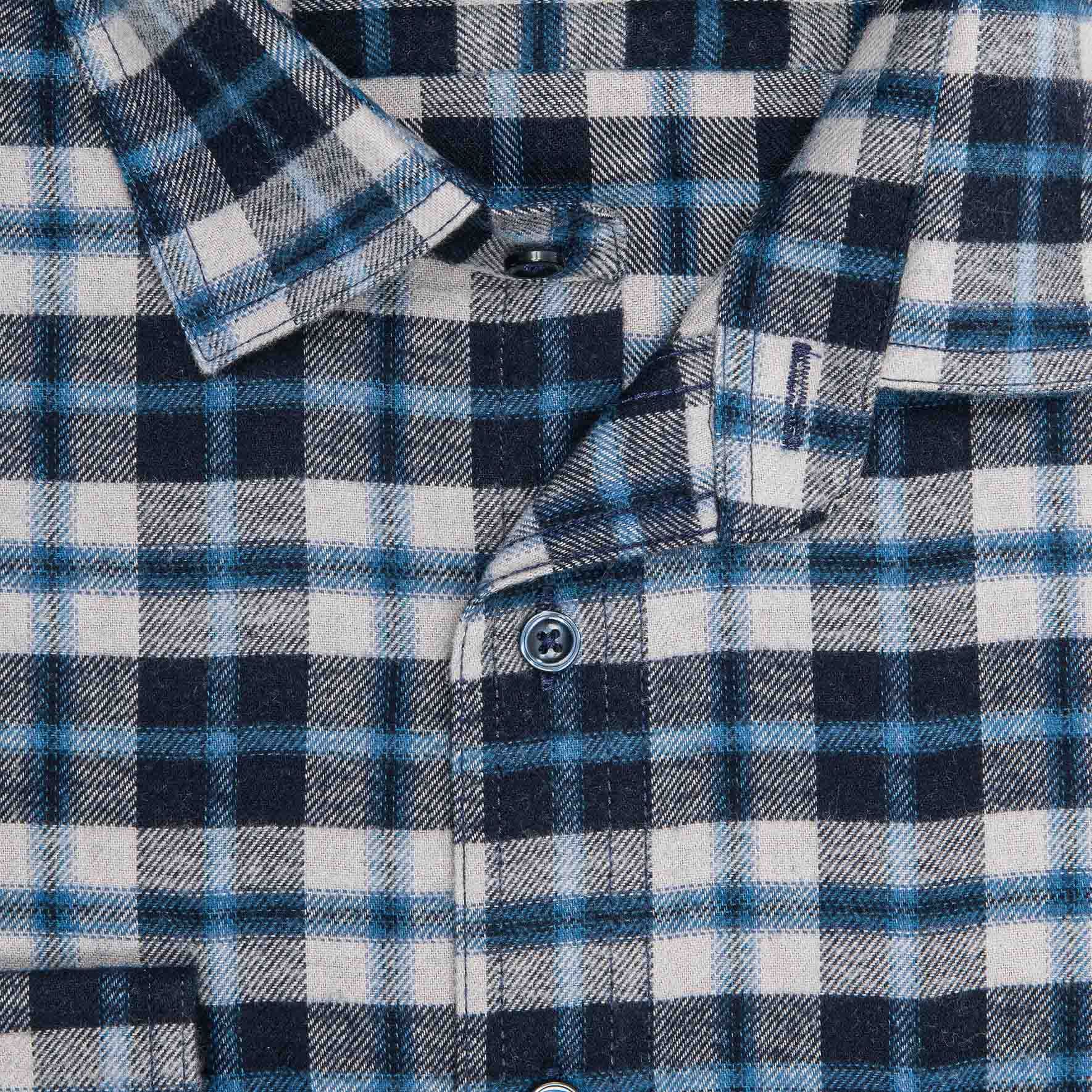 Pánská košile GREED flanelová, modro-šedá károvaná SDF395, dlouhý rukáv, regular fit
