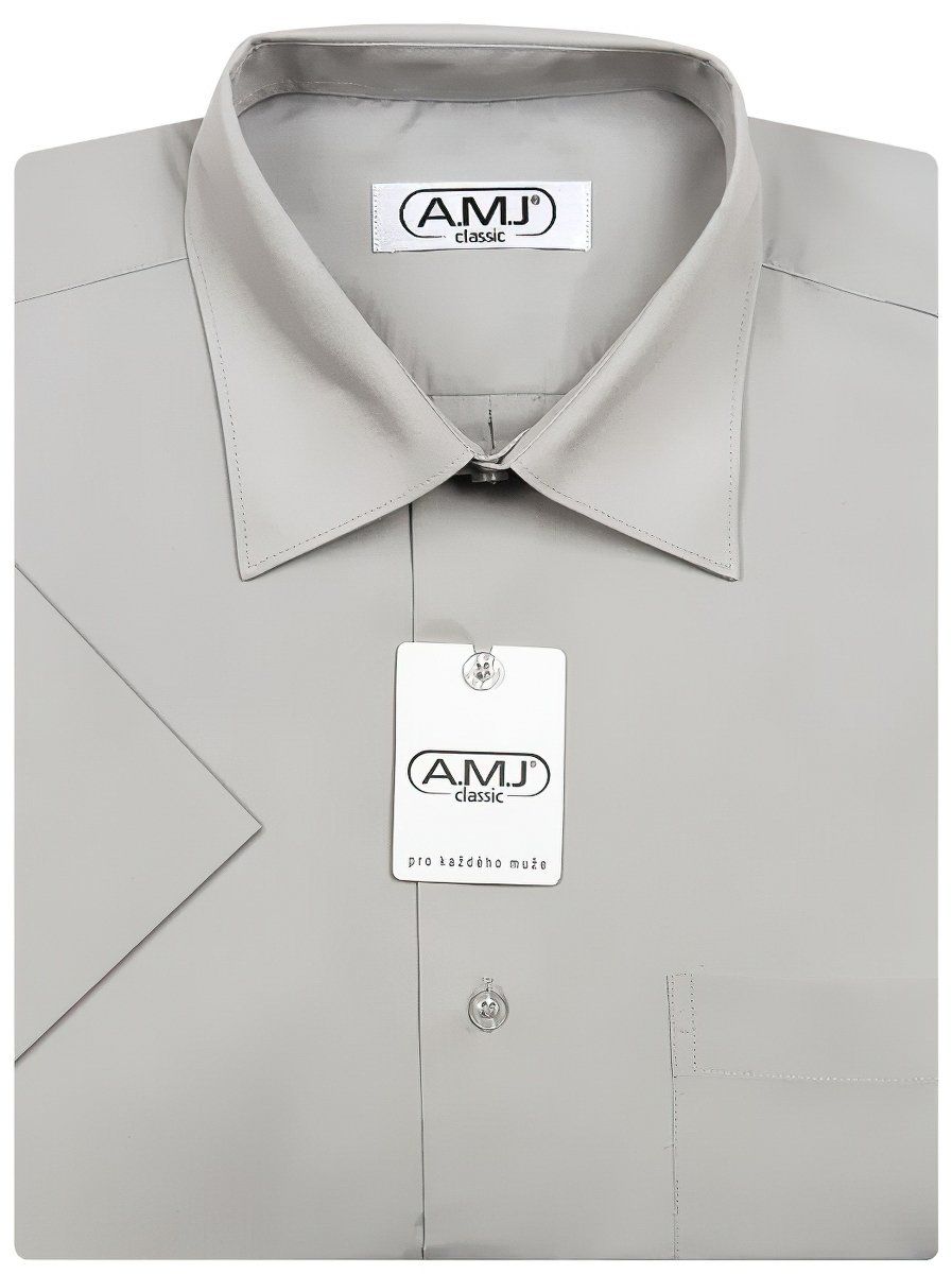 Pánská košile AMJ jednobarevná JK064, světle šedá, krátký rukáv